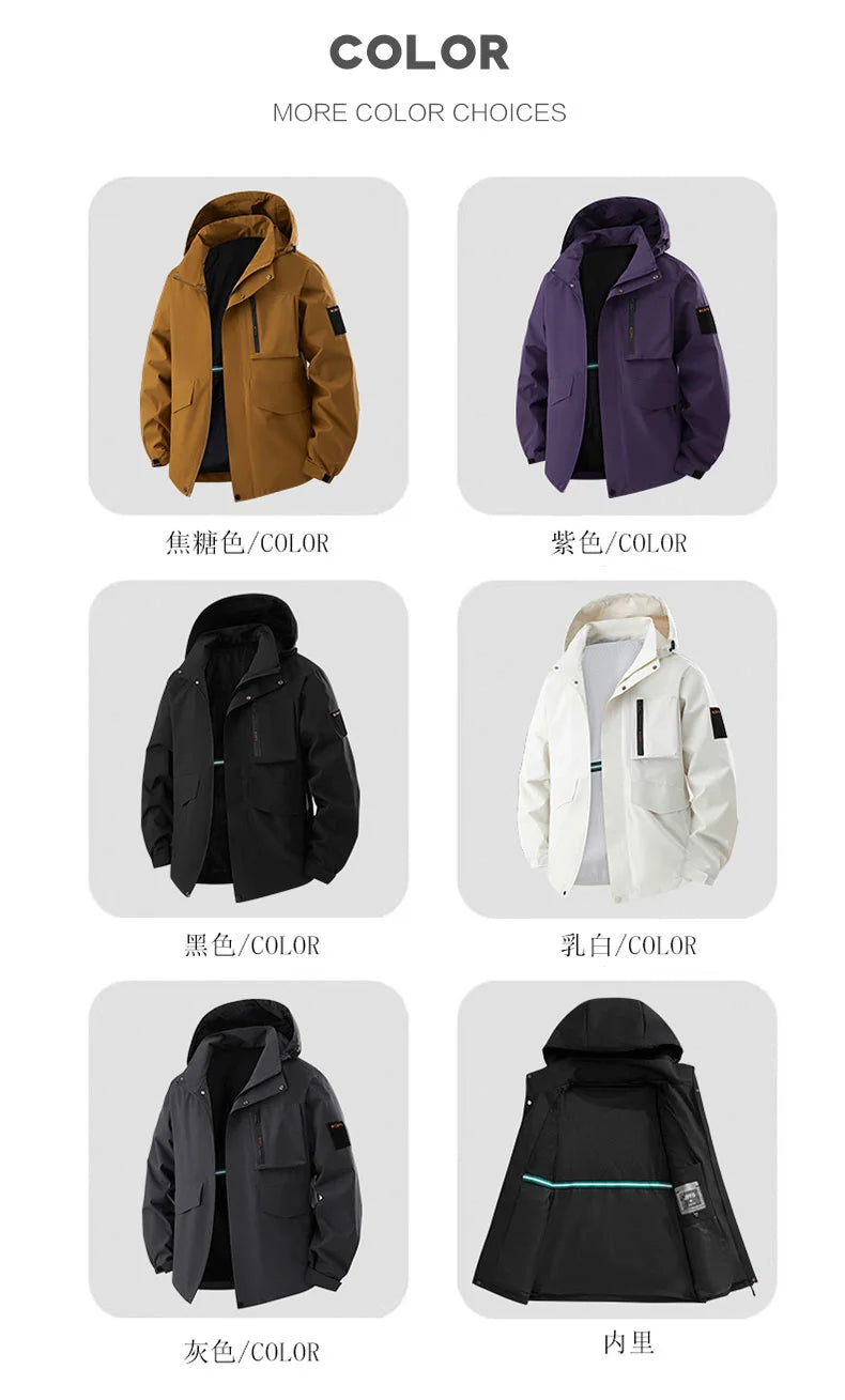 Diese robuste, winddichte und wasserdichte Männerjacke mit abnehmbarer Kapuze bietet zuverlässigen Schutz bei wechselhaftem Wetter und hohen Komfort für den täglichen Einsatz.