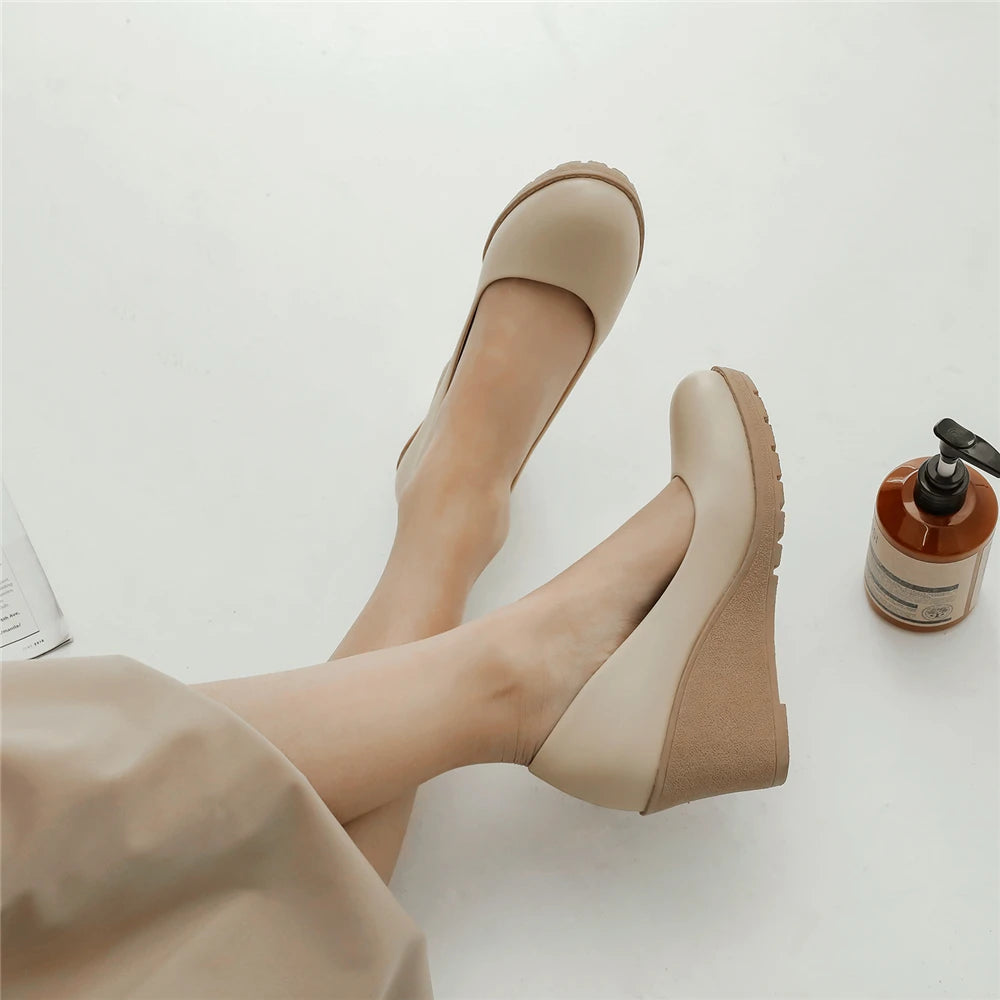 Elegante Wedges mit 7 cm Keilabsatz, die modernen Stil und weich gedämpften Tragekomfort vereinen – ideal für Büro, Events und den Alltag. Diese Damenschuhe sind so gestaltet, dass sie Formschönheit mit funktionaler Bequemlichkeit verbinden, sodass Sie lange Tage mit sicherem Schritt und gepflegtem Auftritt meistern.