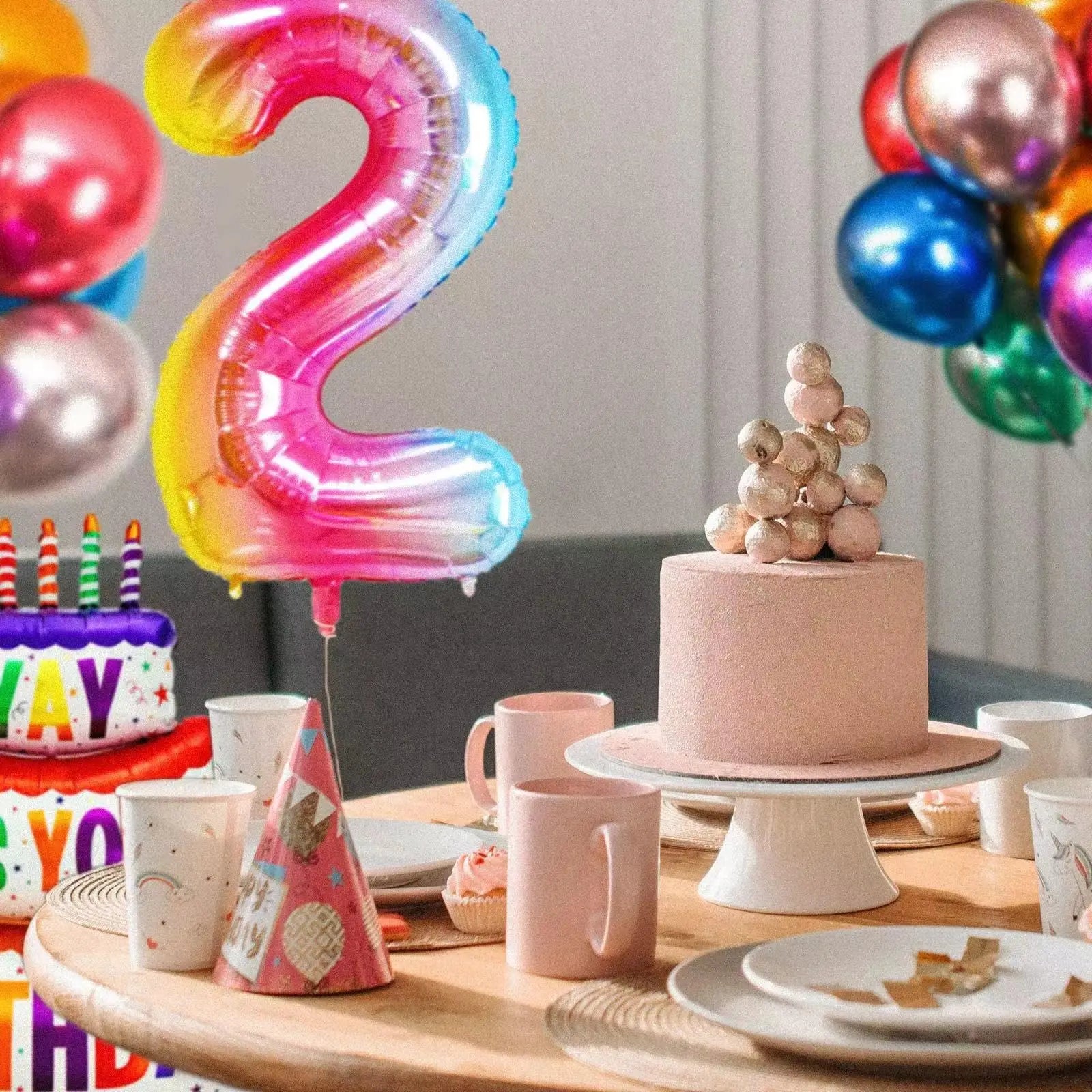 - Packungsinhalt: 20 Stück Zahlen-Folienballons im Regenbogen-Gradient