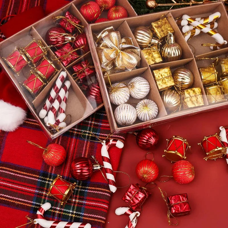 Choice Kugelset Rot-Gold Glitzer - 24 Stück, Ø2 cm