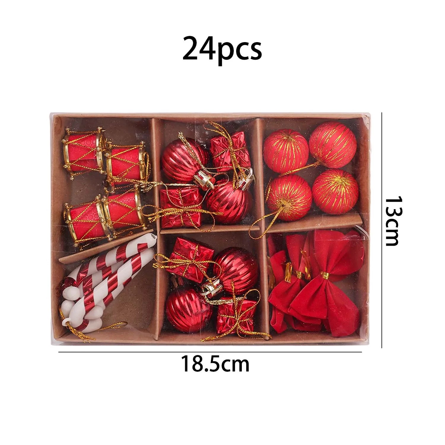 - 24 Kugeln Ø2 cm in Rot-Gold Glitzer