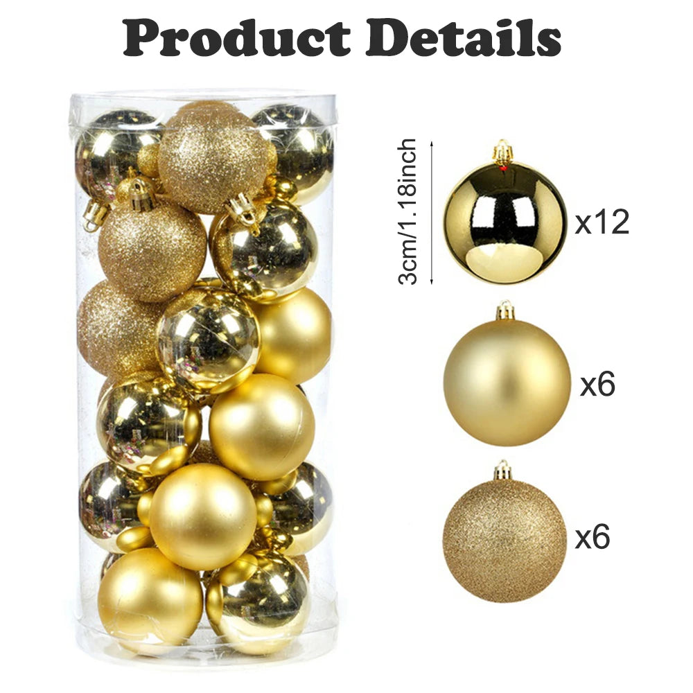 Surpsea KugelnSet Festliche Weihnachtskugeln - 24 Stück 3 cm Mehrfarbig – Vielfältige Baum-Dekoration in kompakter Form