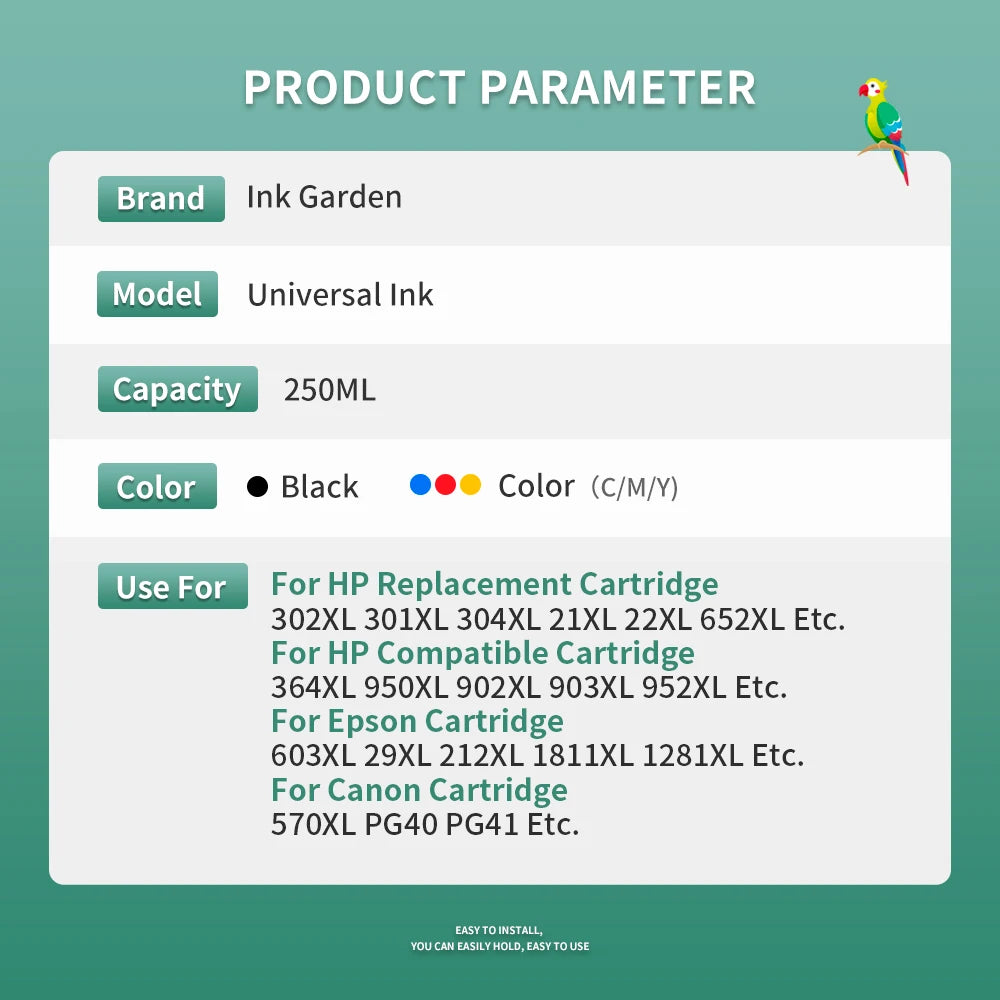 InkGarden Universal Tinten Nachfüllset - 250ml HP Canon für kosteneffizientes Drucken