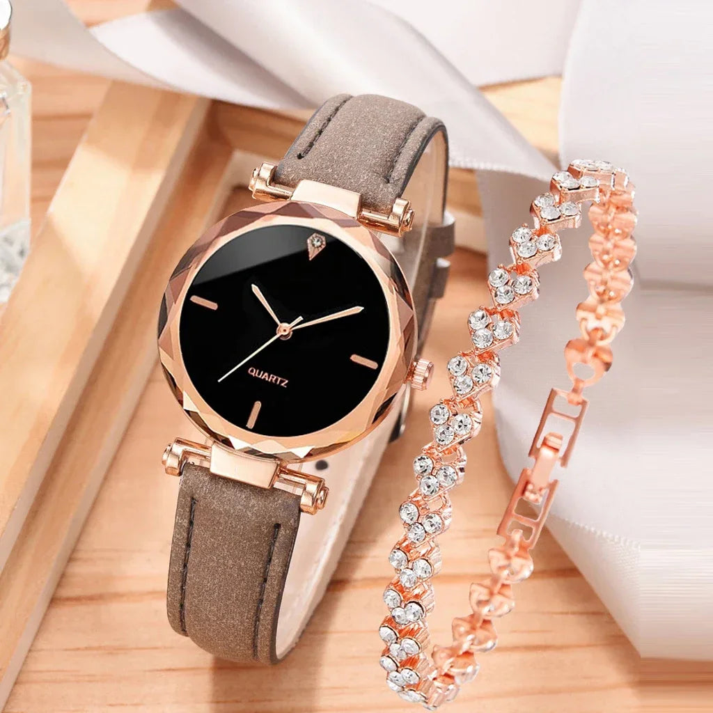 Uhren-Armband-Set 2025: 2PCS Luxury-Rhinestone - Fashion Bracelet Collection