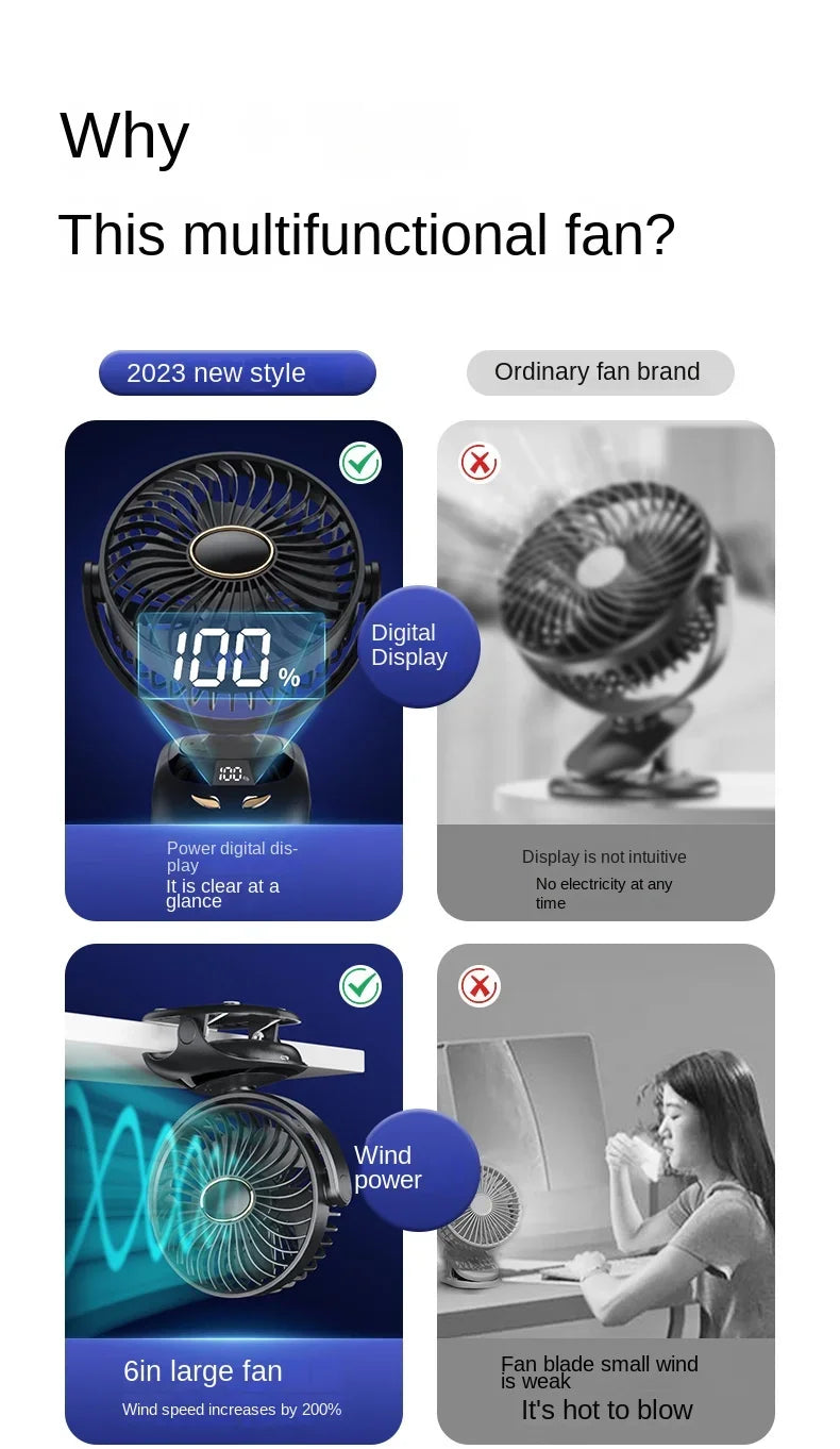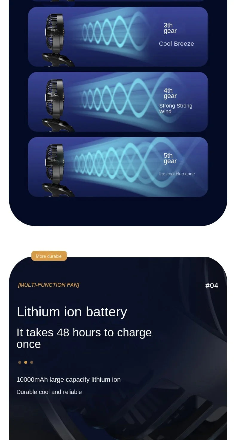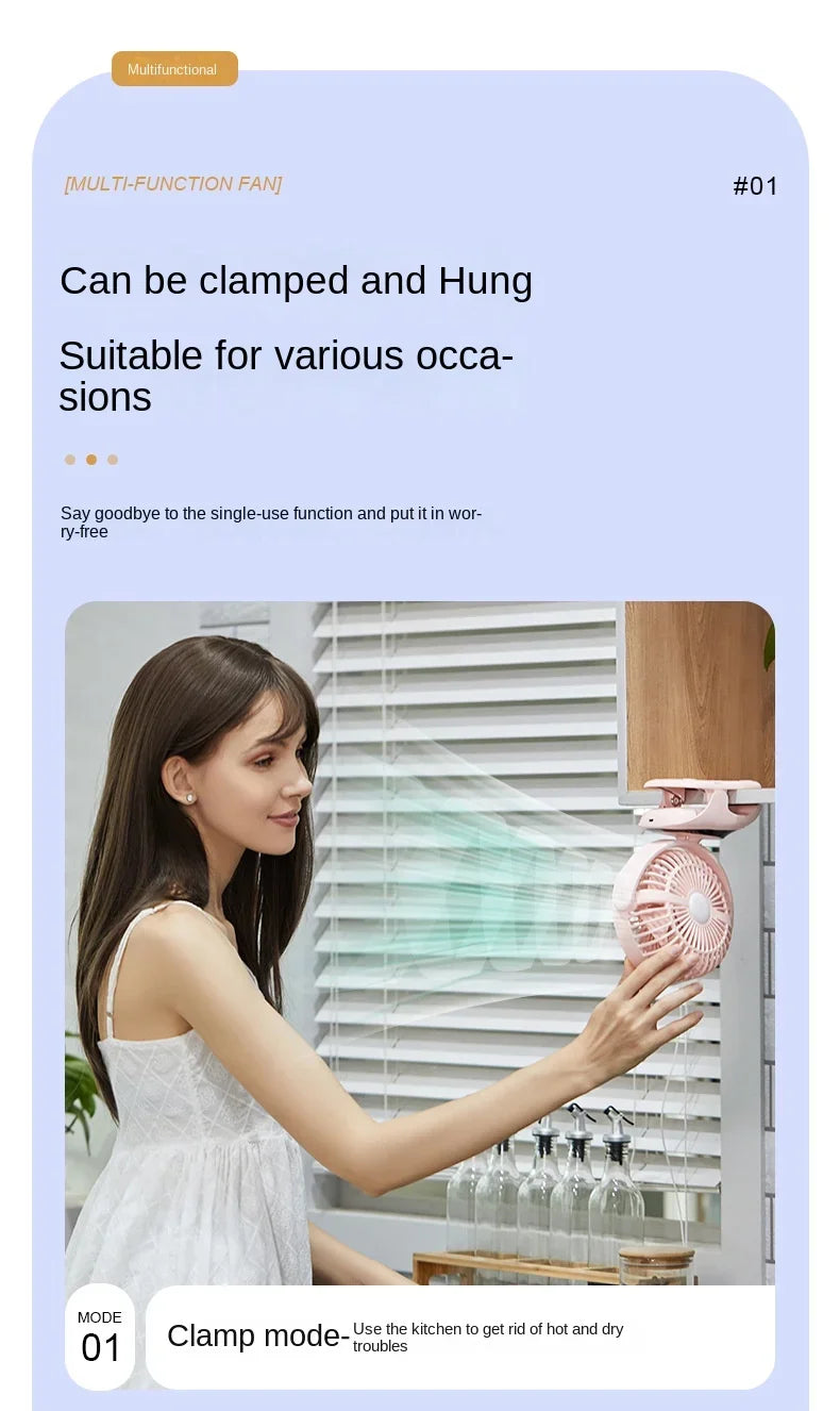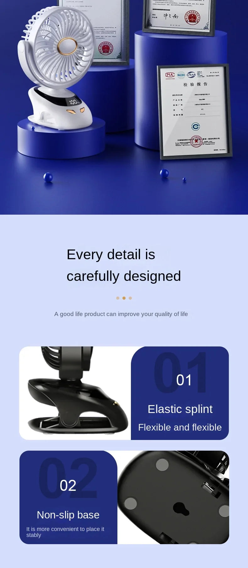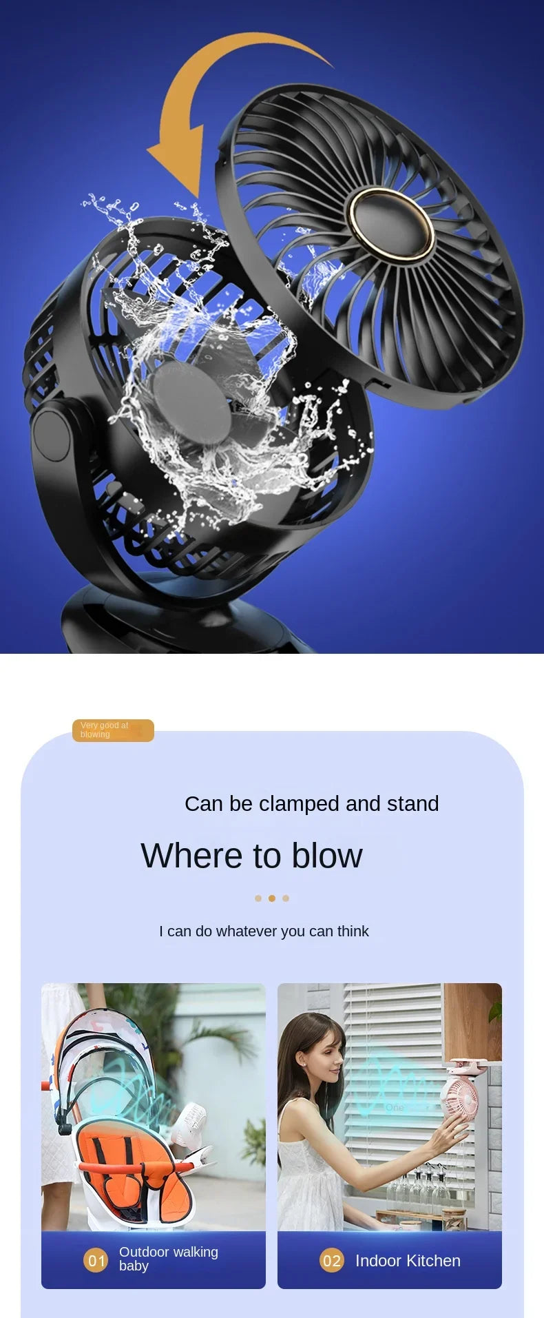 - 1 x 3000mAh Tragbarer Clip-Ventilator (USB wiederaufladbar)