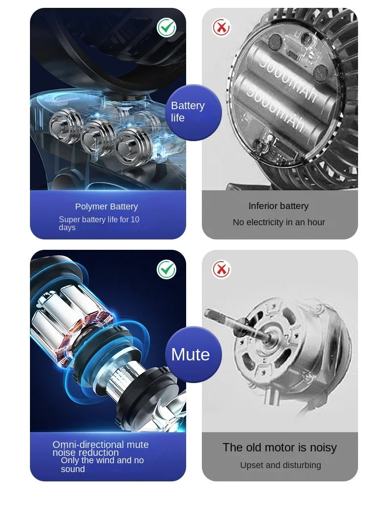 3000mAh Tragbarer Clip-Ventilator USB Wiederaufladbar – Leise Kühlung für Zuhause und unterwegs