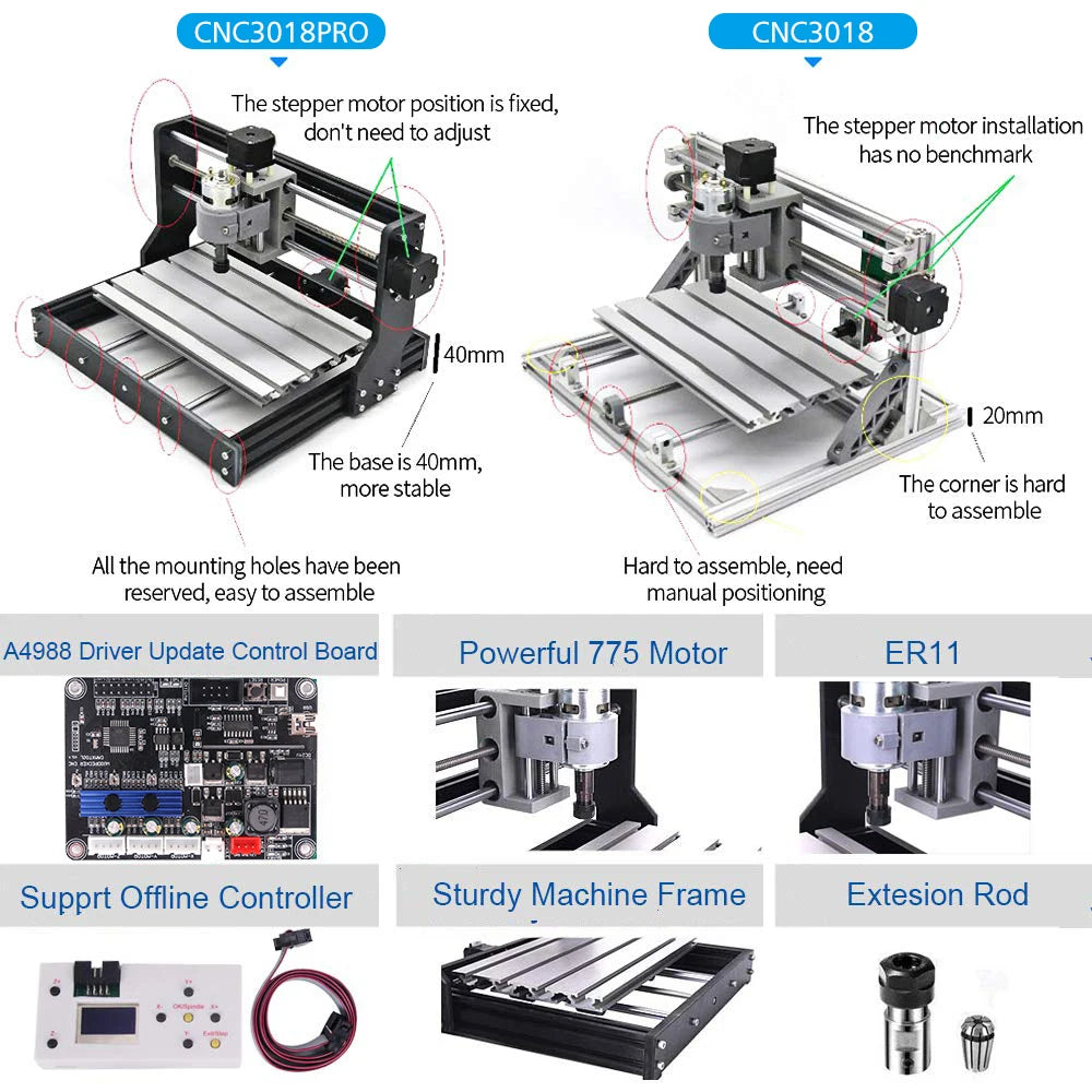 - TwoWinCNC 3018 Pro Laser Gravur Maschine (inkl. montierter Laser)