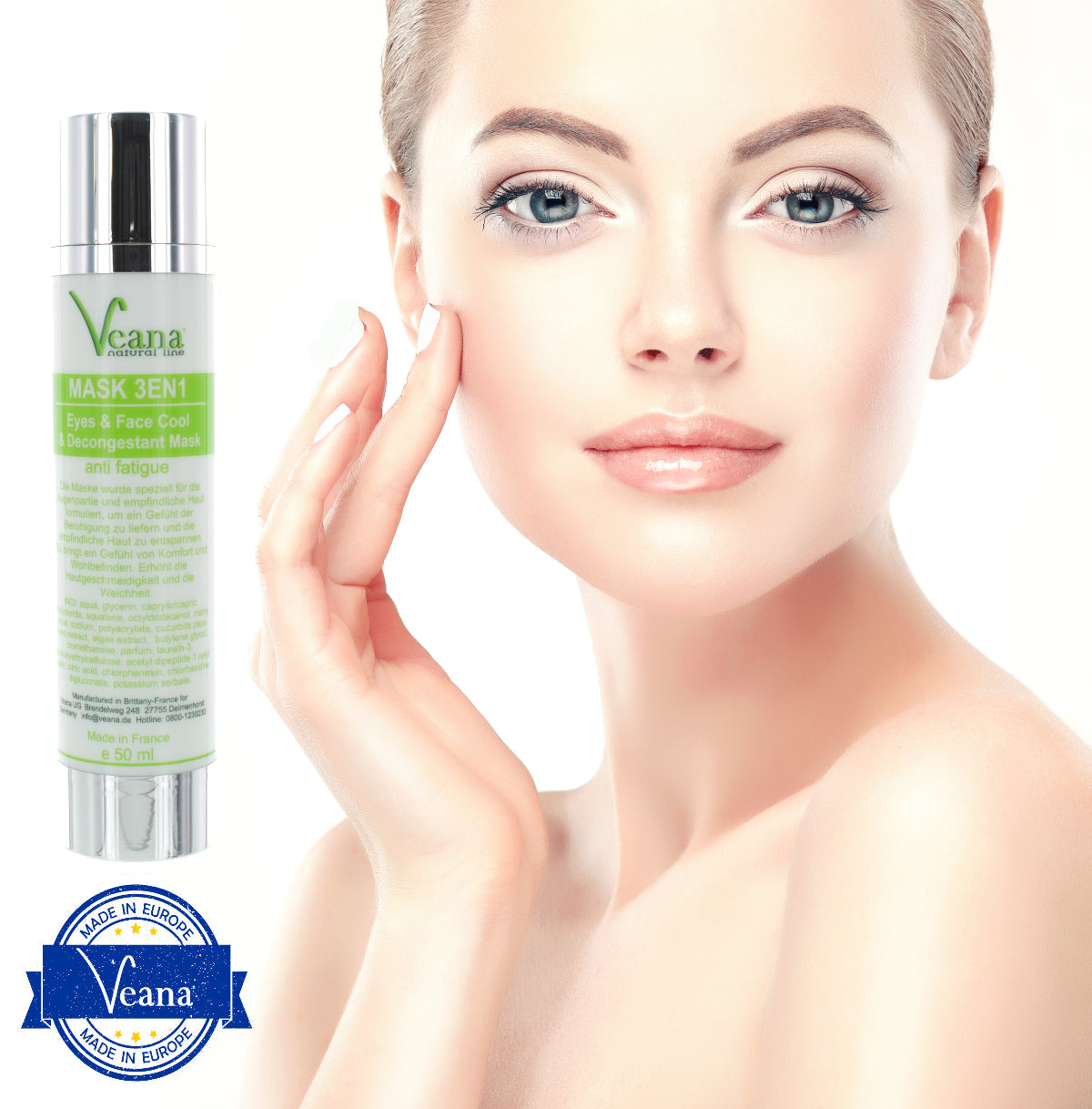 Genau dafür haben wir eine spezielle Maske für die Augen- und Mundpartie entwickeln lassen: 3in1 Maske für Augen und Gesicht, kühlend und abschwellend. Eye and Face Cool Mask mit Rotalgen-Extrakt und Meeresmineralien spendet intensiv und lang anhaltend Feuchtigkeit, verbessert die Festigkeit der Augenpartie und reduziert Schwellungen.