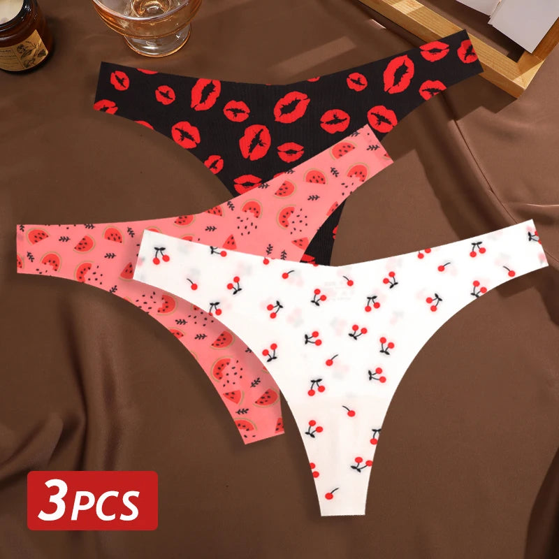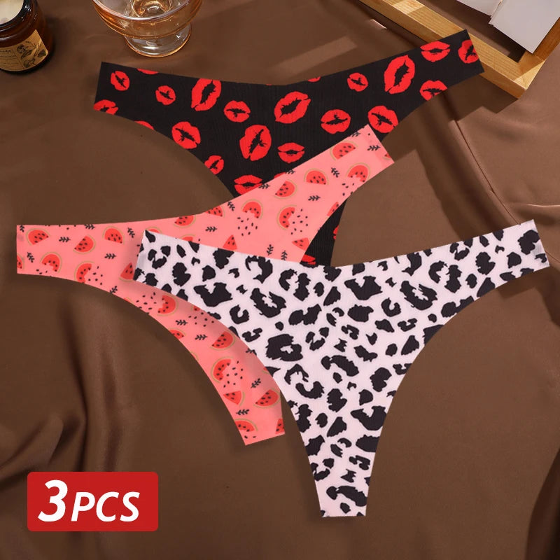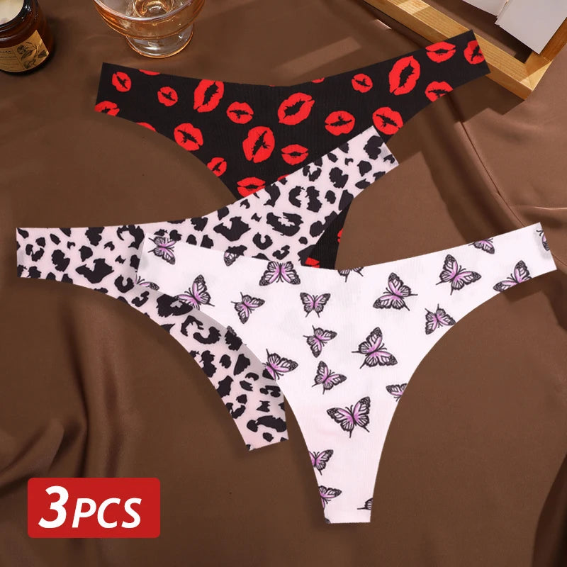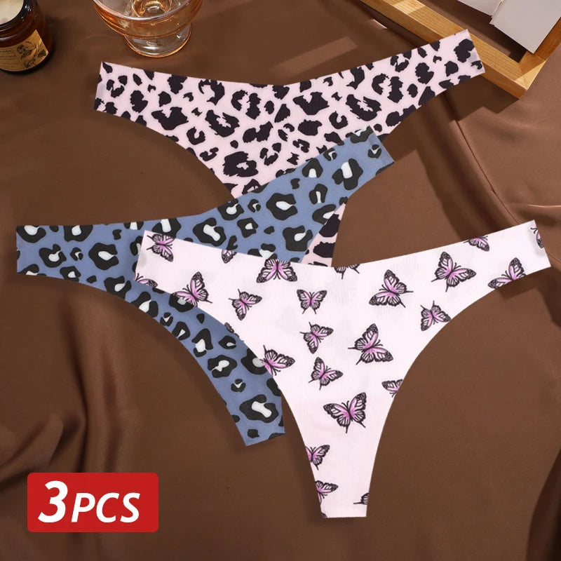 All Of Me Damen-Unterwäsche 2025 - 3er-Set Ice Silk nahtlose Strings Leopard & Schmetterling Print
