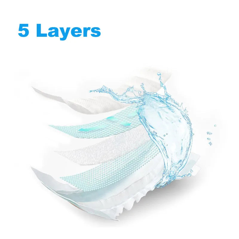- Mehrlagige Innenschicht verteilt Flüssigkeit gleichmäßig, um Rücknässung zu vermeiden.