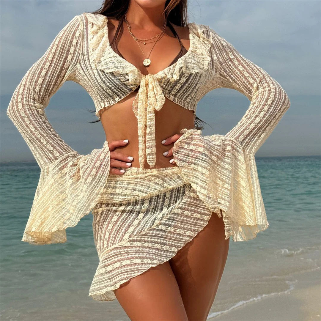 4PCS Halter Bikini Set Sarong Langarm – Vielseitiges Vierteiliges Schwimm-Set für Komfort und Stil