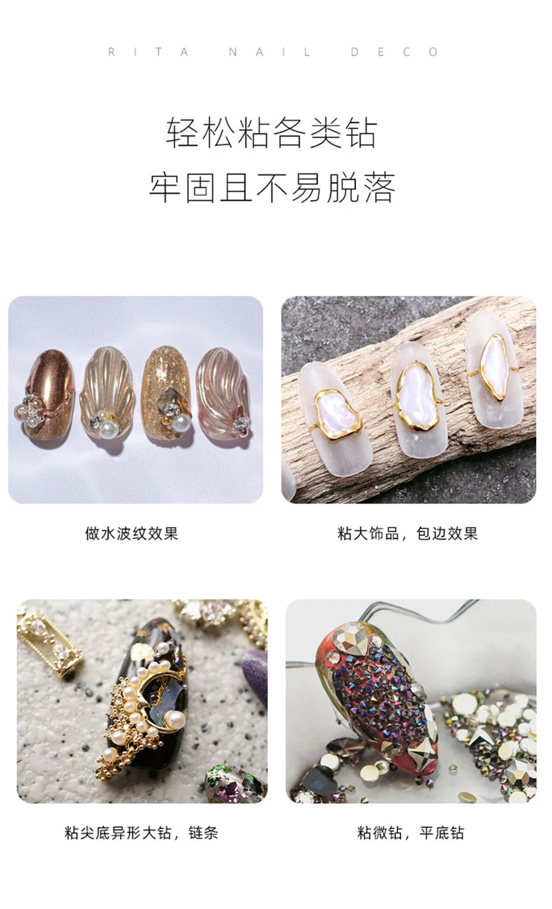 - Optimiert für Gel-, Acryl- und feste Nail-Patch-Systeme; verbindet Materialien sicher und dauerhaft.