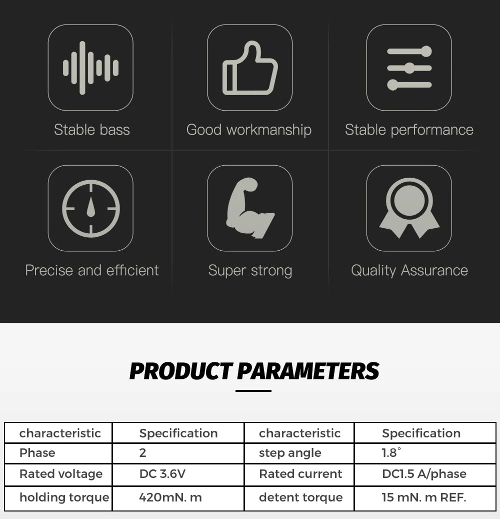 Der 5Pcs Usongshine Nema17 Stepper Motor 17HS4401 bietet eine ausgewogene Kombination aus Drehmoment, Präzision und Kompatibilität. Entwickelt für Hobbyisten, Entwickler und industrielle Anwender, die eine zuverlässige und wiederholbare Bewegungssteuerung benötigen. Mit einer Stromaufnahme von 1,5 A pro Phase und einer Haltekraft von 4000 g·cm ermöglicht dieser Motor präzise Schrittabstände, stabile Laufcharakteristiken und eine lange Einsatzdauer in vielfältigen Anwendungen wie 3D-Druck, CNC-Bearbeitung und Lasergravur.
