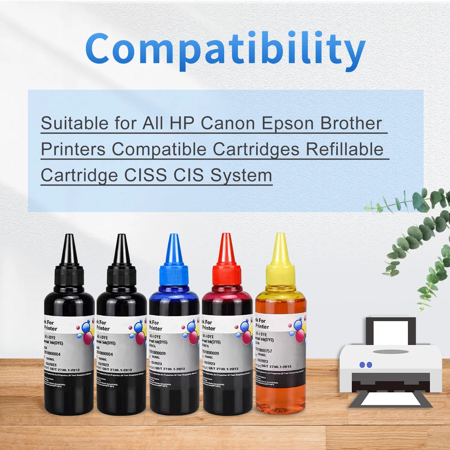 Aomya 5x100ml Tinte Universal Für Epson HP - BK CMY