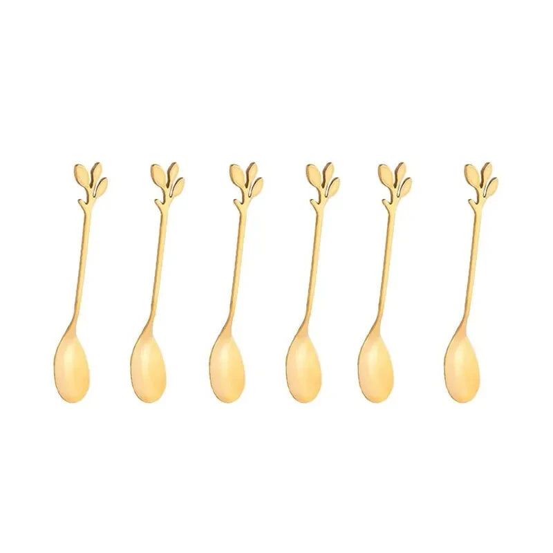 Other Blattlöffel Kreativ - 6-Teilig Edelstahl 13 cm: Stilvolle Gold-Akzente für Kaffee, Tee und Dessert