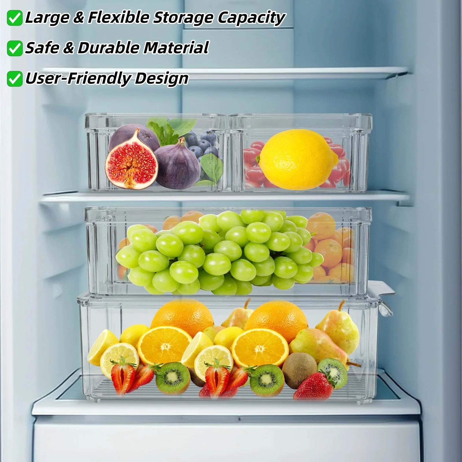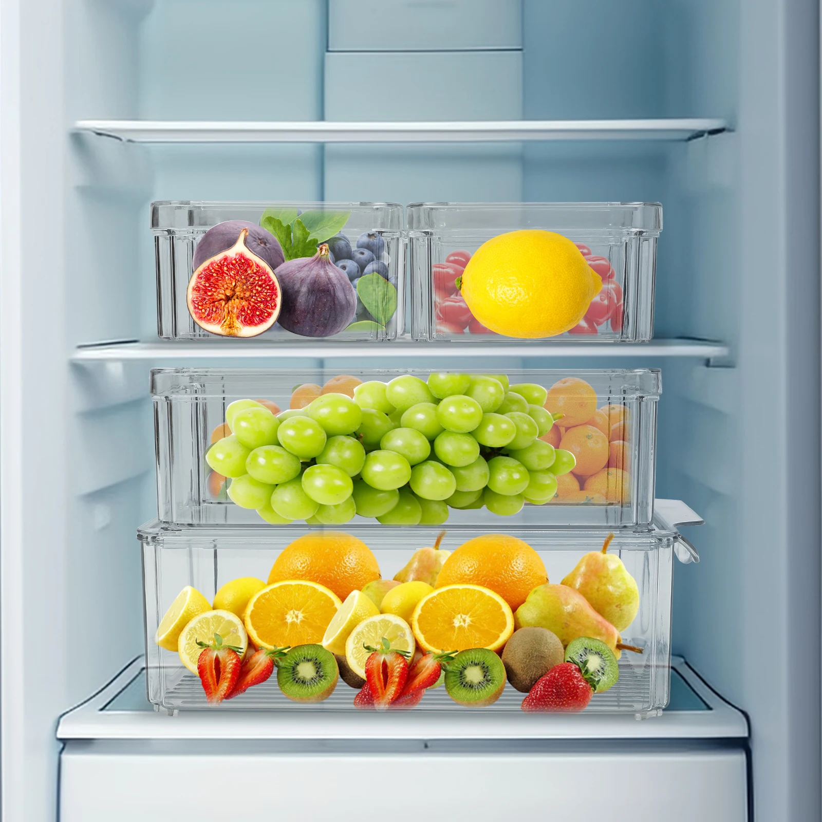 Platzsparend:Das gestapelte Design mit Deckel nutzt den Stauraum voll aus und spart Platz, sodass er in der Ecke des Kühlschranks gestapelt werden kann.