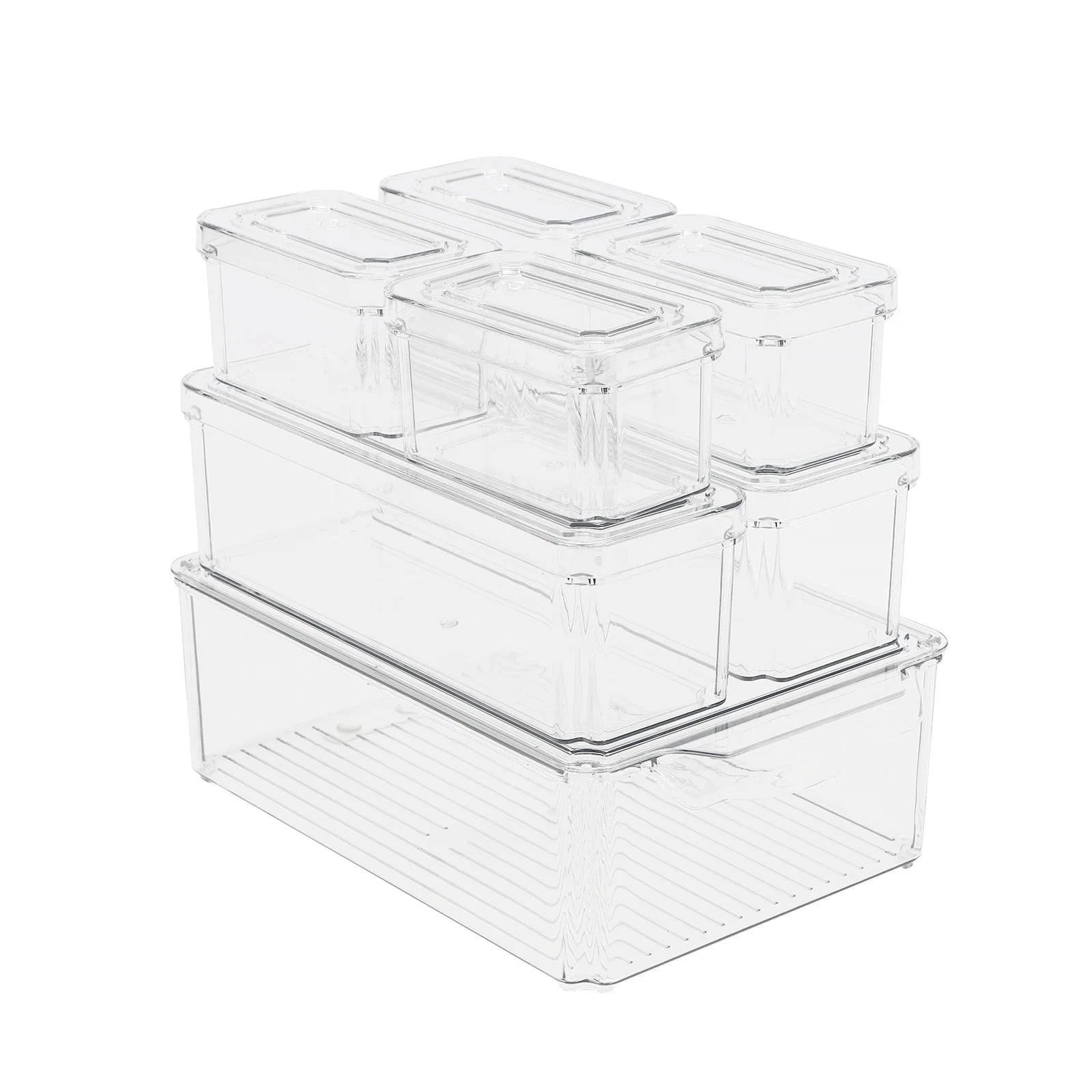 7-teilige Kühlschrank-Organizer, stapelbare Aufbewahrungsbehälter mit Deckel, durchsichtige Kunststoff-Aufbewahrungsbehälter, für Obst, Gemüse, Gefrierschrank