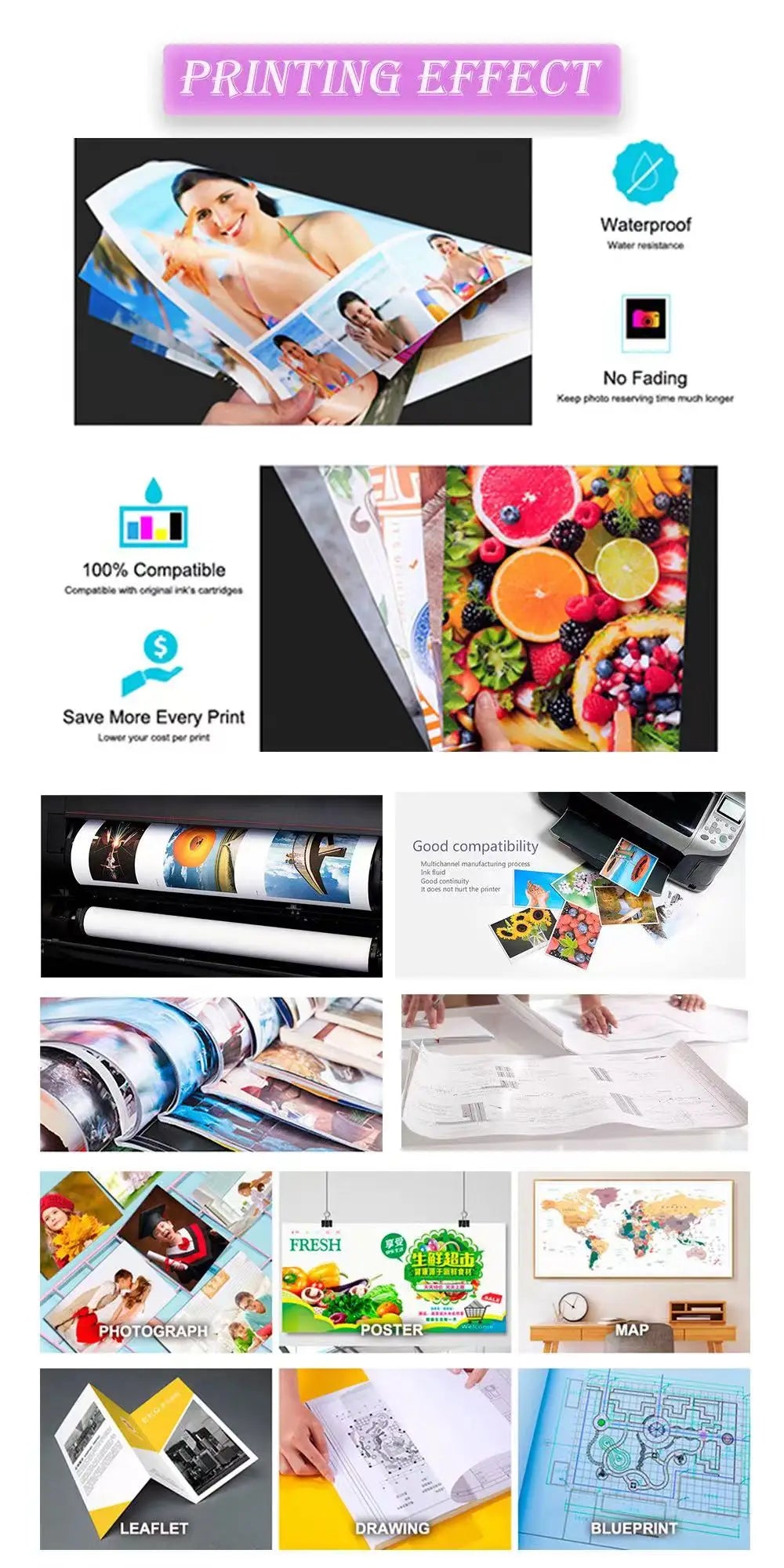 - Geeignet für verschiedene Druckmedien: Fotopapiere, Folien, Planpapier und beschichtete Medien.