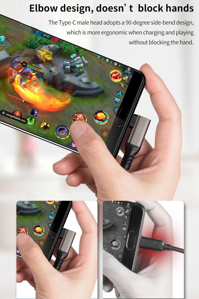 - 90° Winkelstecker: Ergonomisches Design für komfortables Laden beim Spielen, Streamen, Videoschauen oder Lesen ohne Handbehinderung.