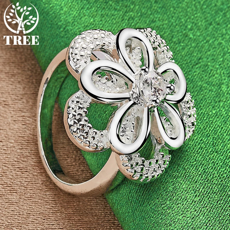 925 Sterling Blumenring Luxus - 8,7 g Zirkonia 925 Silber
