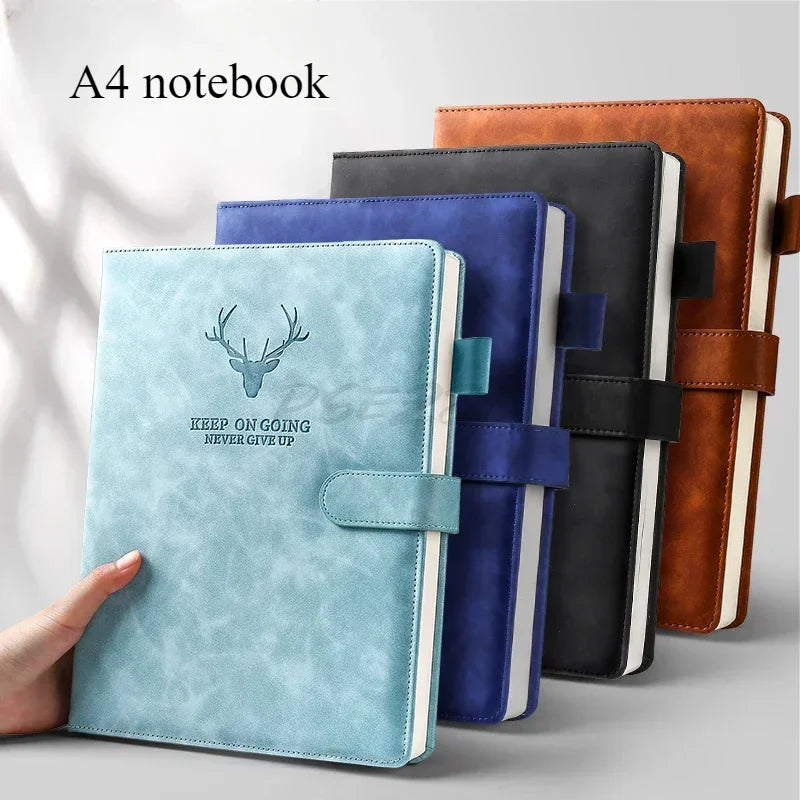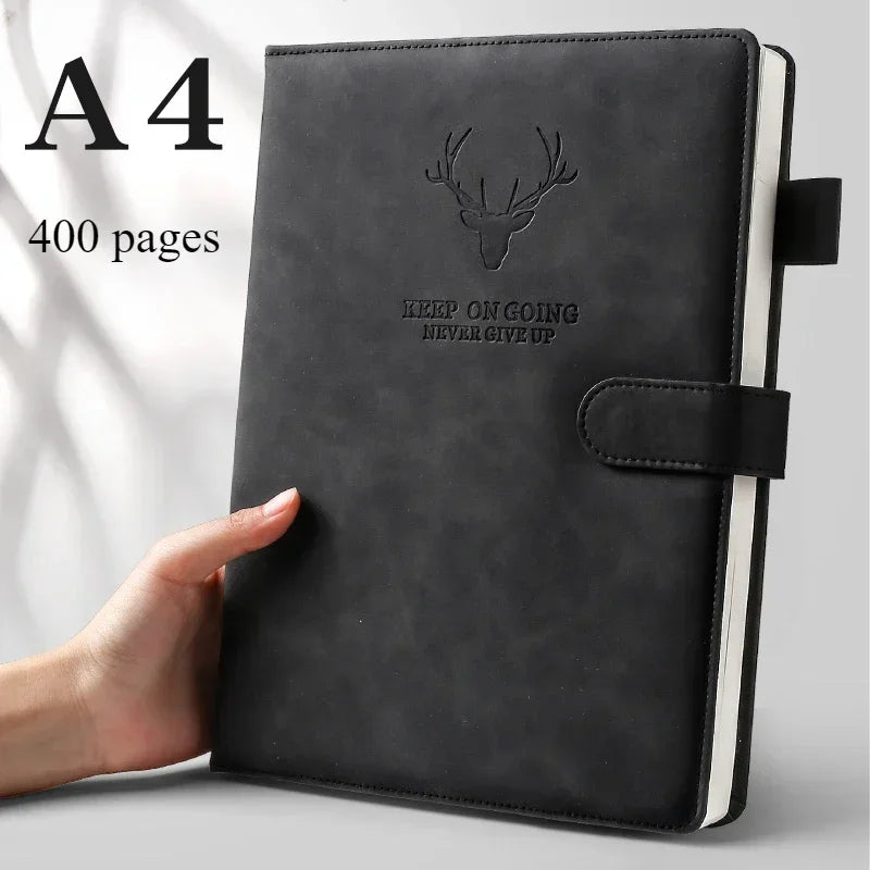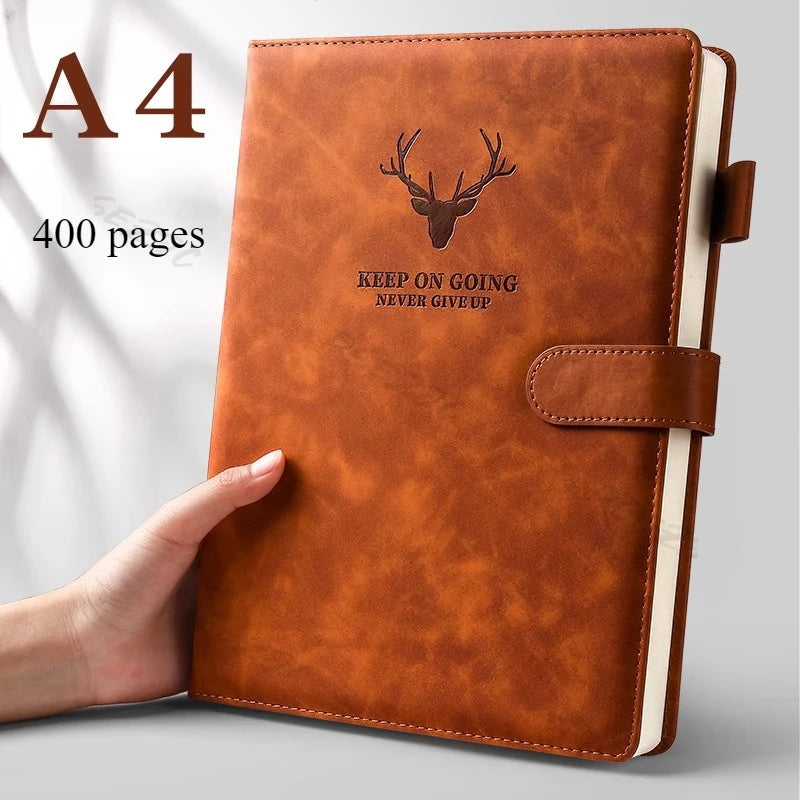 Dieses ultra-dicke A4 Notizbuch kombiniert robustes Softleder mit extra vielen Seiten, damit Sie berufliche Notizen, Studieninhalte und kreative Ideen übersichtlich und stilvoll verwalten können.