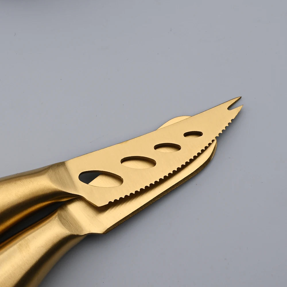 Das AJOYOUS 6-teilige Käsemesserset vereint mattes Gold-Design mit robuster Edelstahlqualität – für saubere Schnitte, einfache Portionierung und eine ansprechende Tafelpräsentation in Küche und Haushalt.
