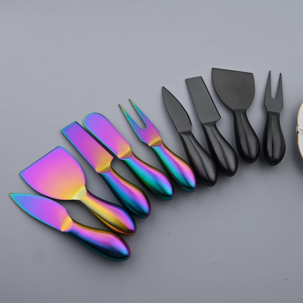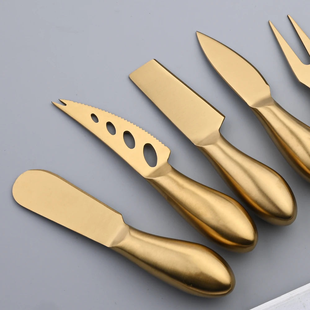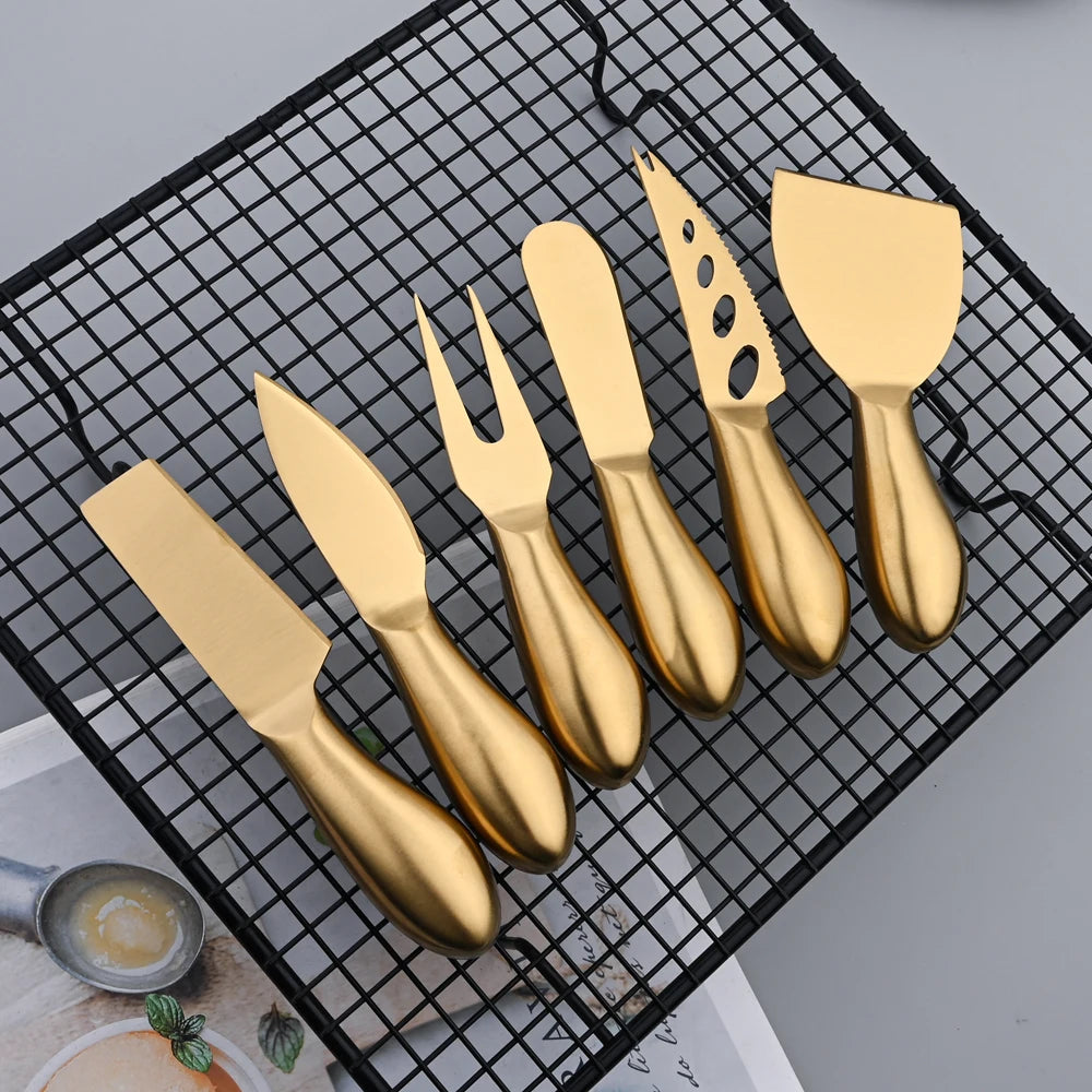 AJOYOUS Cheese Knife Set Cheese Stainless Steel 6Pcs Gold Cheese Slicer Cutter Handle Mini Knife Butter Knife Spatula Fork Matte