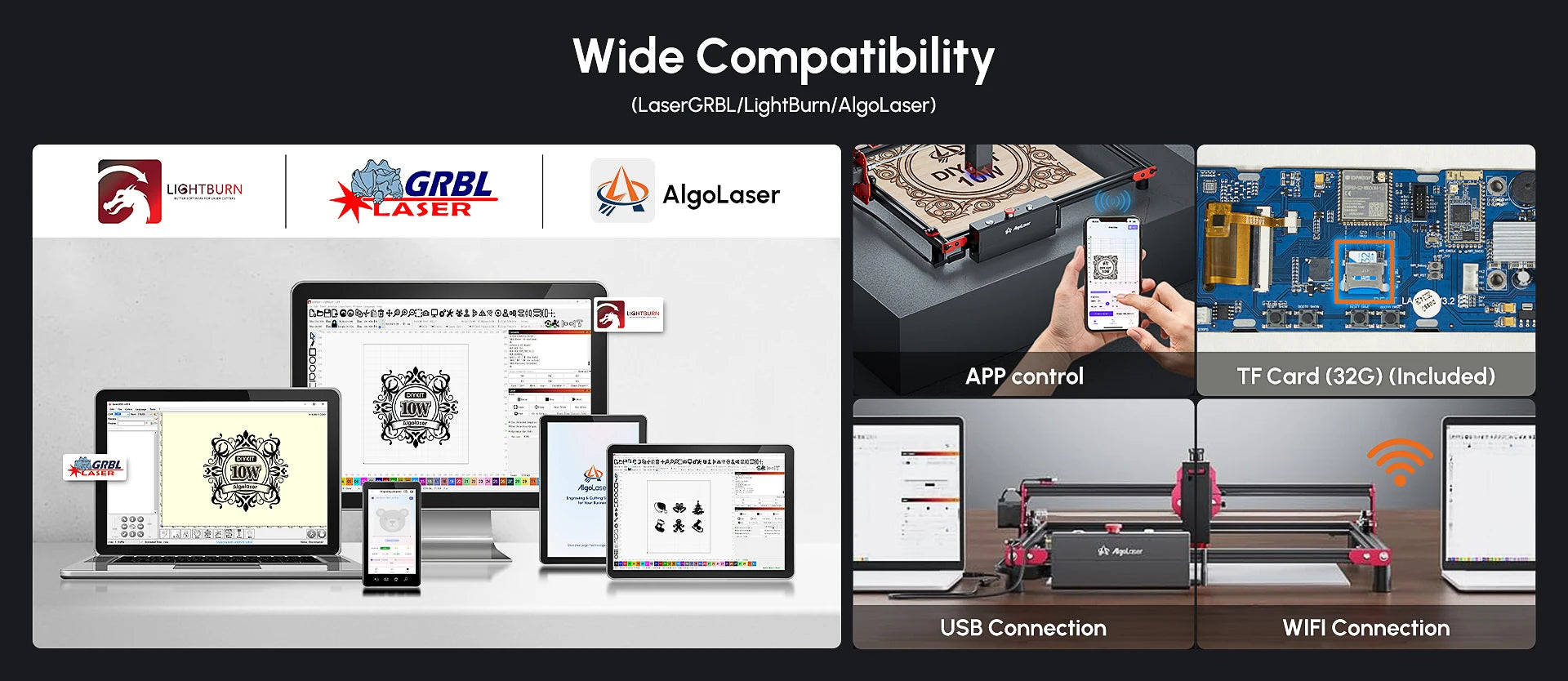 - Kompatibilität: Anschlussmöglichkeiten für gängige Lasergraviercontroller und Steuerungssoftware