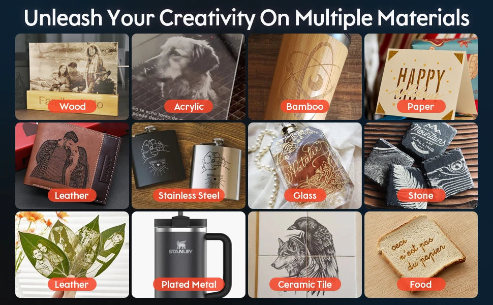 - Kompatibel mit gängigen Lasergravierern und Steuerungssoftware, so lässt sich das Kit nahtlos in vorhandene Arbeitsabläufe integrieren.