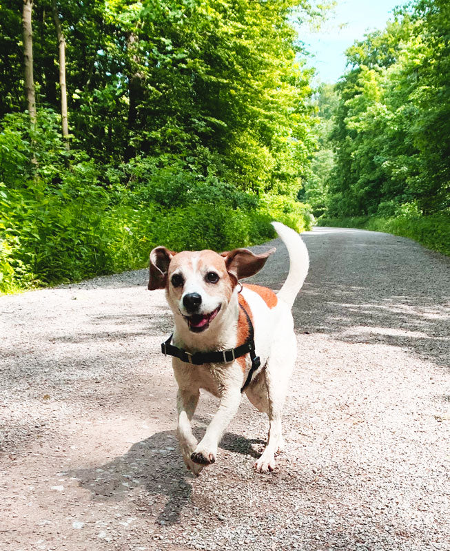 - Ermöglicht dem Hund weiterhin aufrecht im Gang zu bleiben, statt zu versteifen