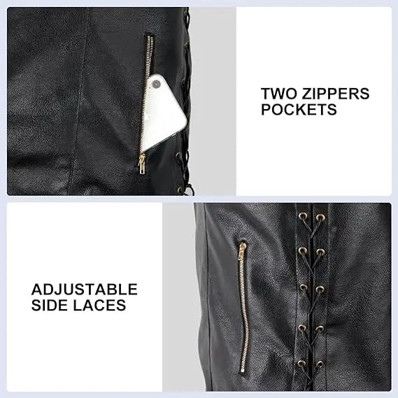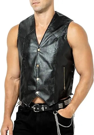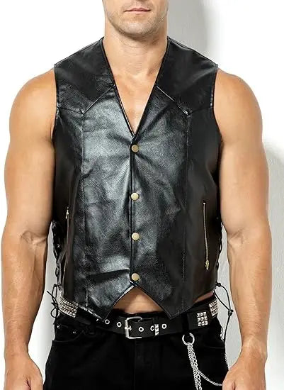 Arjen Kroos Kunstlederweste - Mit Taschen, Schnürung L