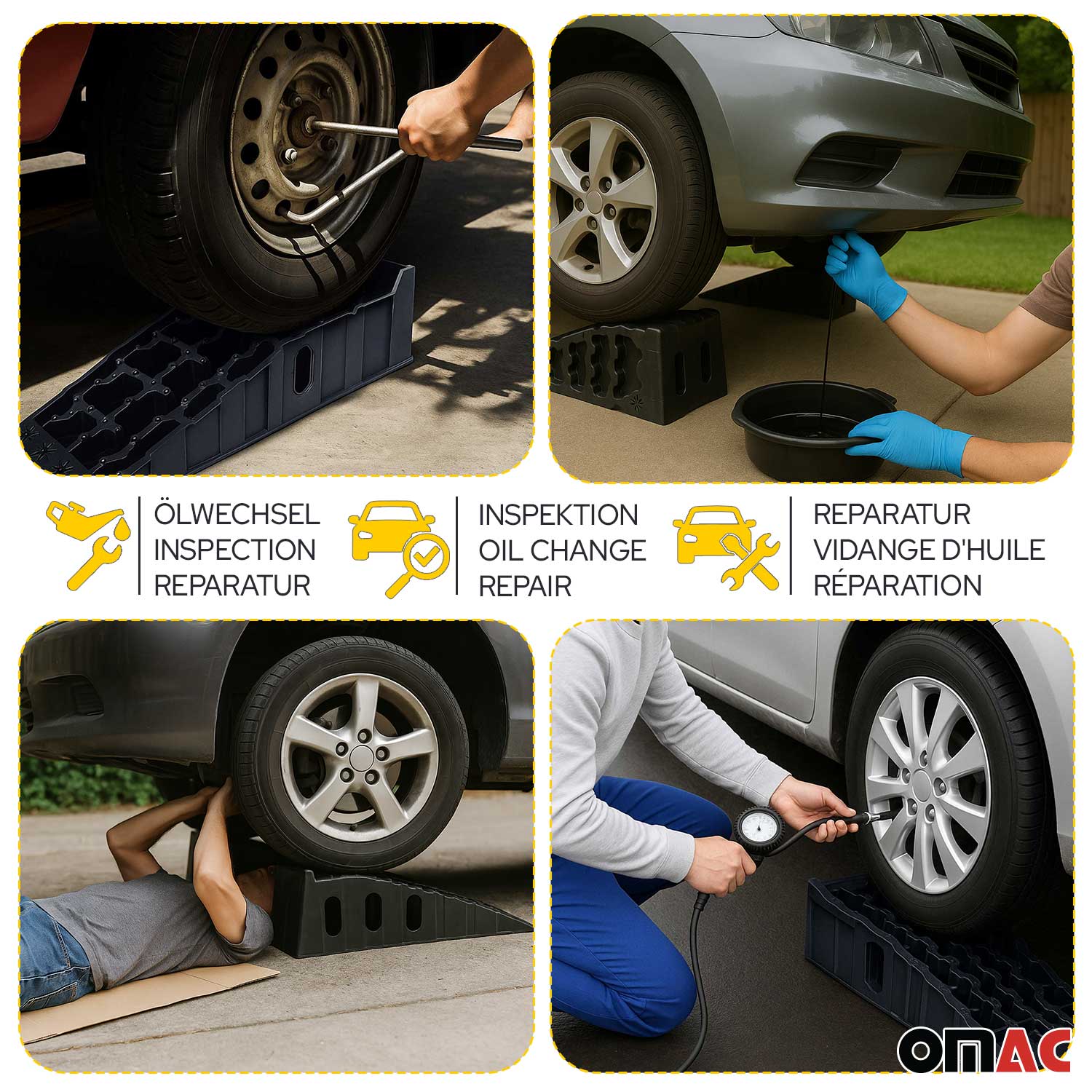 - Vielseitig einsetzbar: Unsere Rampen sind ideal für Ölwechsel, Inspektionen und kleinere Reparaturen und ein vielseitiges Werkzeug für Heimwerker.