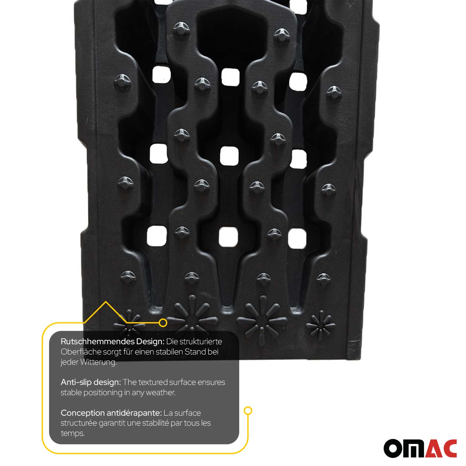 Integrierte Anti-Rutsch-Rillen bieten zusätzlichen Halt und sorgen für einen mühelosen Auf- und Abstieg. Unsere kompakten und leichten Rampen sind eine unverzichtbare Ergänzung für den Werkzeugkasten jedes wartungsbewussten Fahrzeugbesitzers.