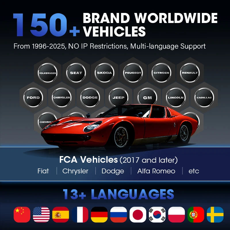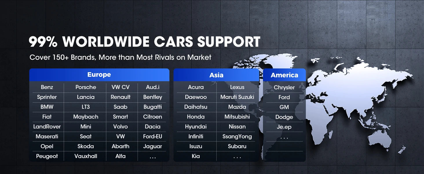 - Breite Fahrzeugabdeckung: Unterstützt eine Vielzahl von Marken und Modellen, geeignet für Pkw, kleine Nutzfahrzeuge und viele europäische, asiatische sowie amerikanische Fahrzeugtypen.