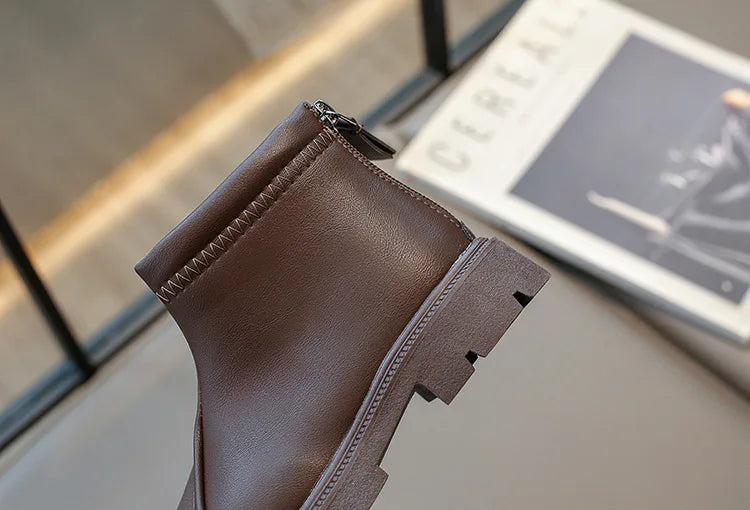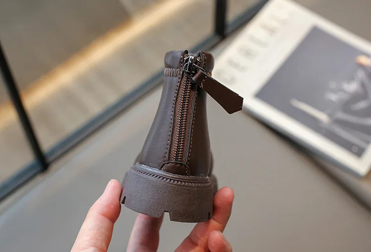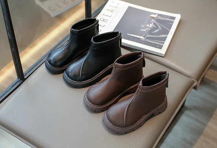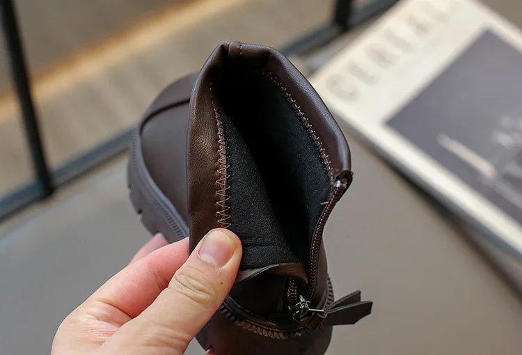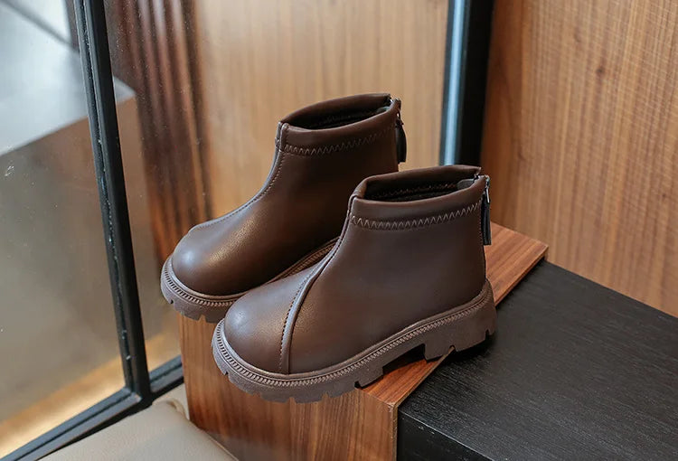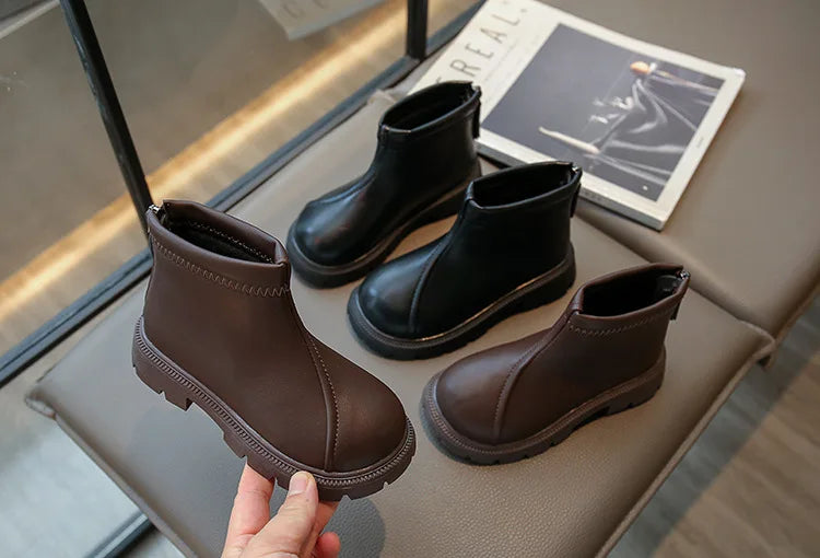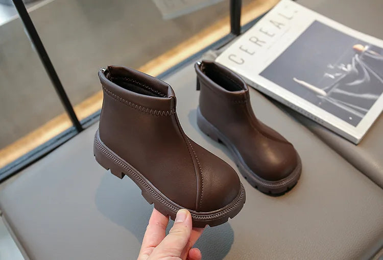 Herbst Winter Neue 2025 Kinder Fashion Stiefel - Mädchen Wasserdicht Rutschfest Reißverschluss - Weiche Sohle Leder Stiefel Kinder Casual Schuhe