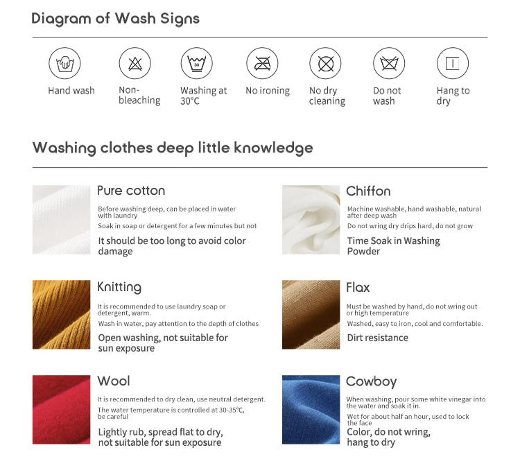 - Pflegehinweise und Größenratgeber in deutscher Sprache