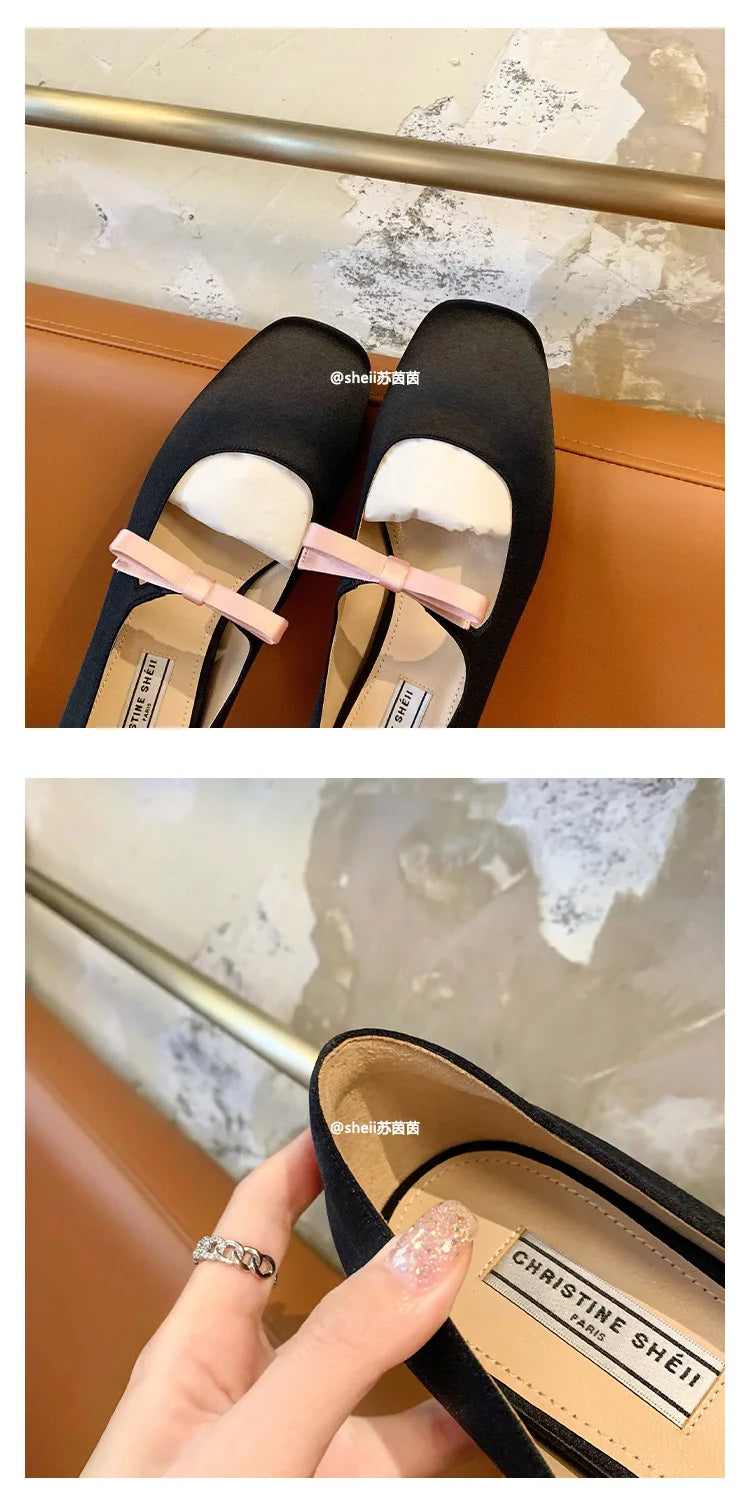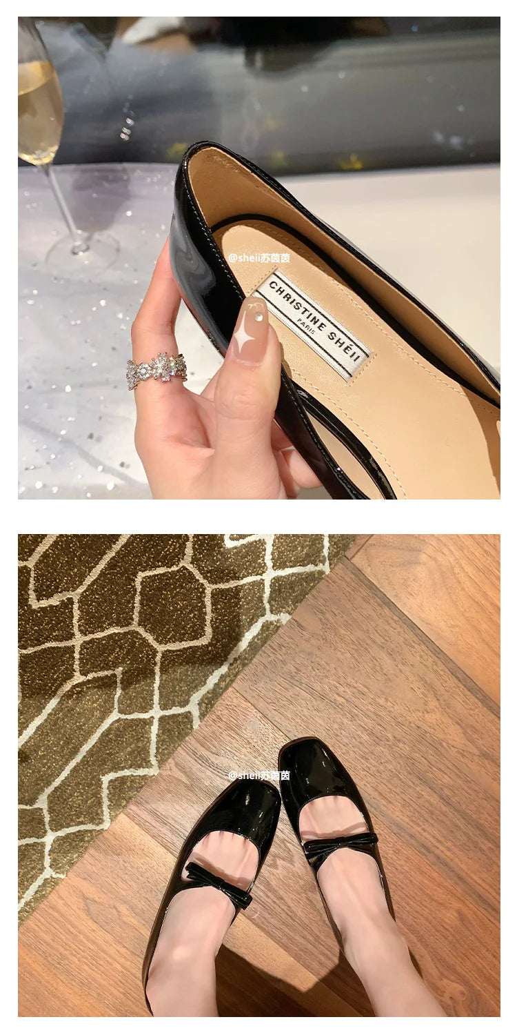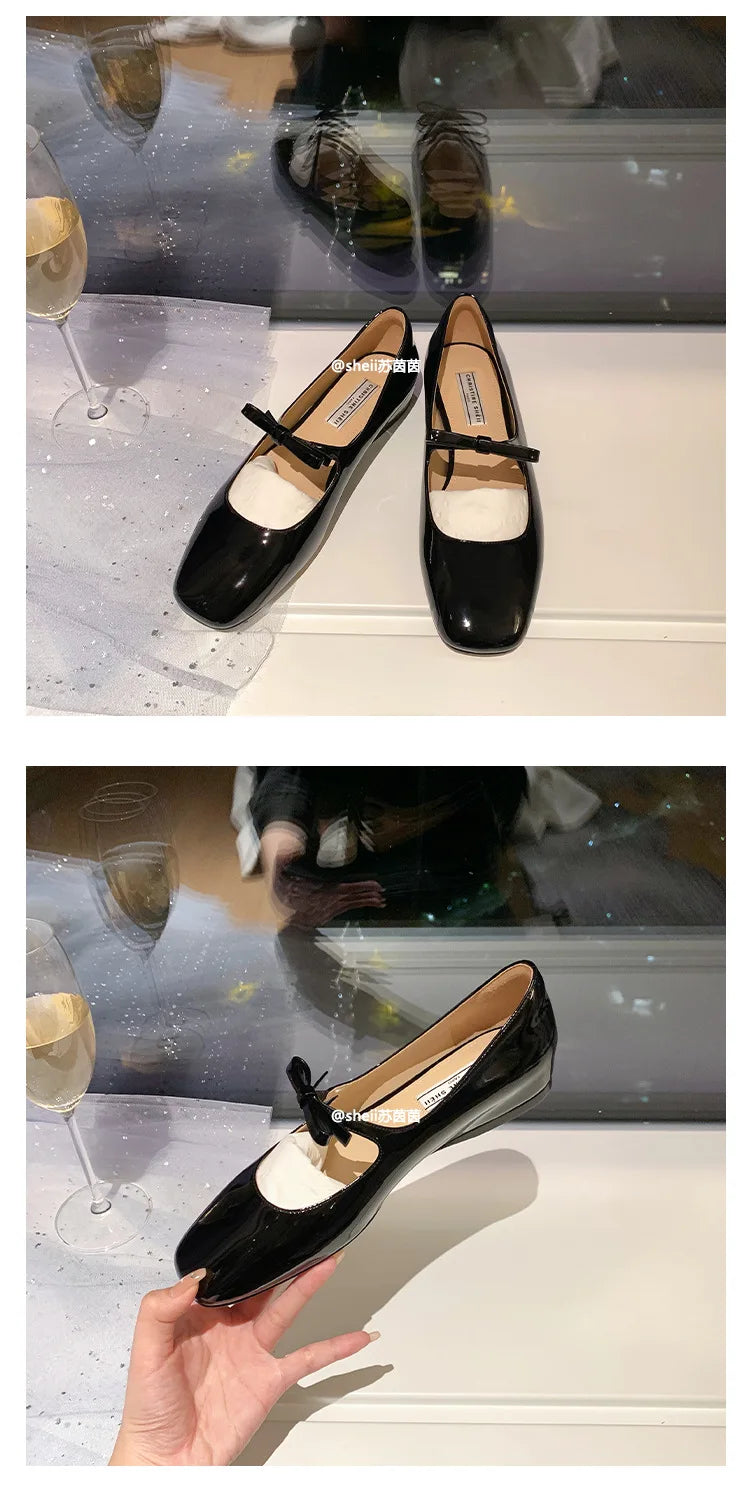 Ballet Falts Shoes for Women Bow Tie Elegant Women's Loafers Shoes with Low Heels Black Leather Mary Janes Desinger Shoes Ladies
