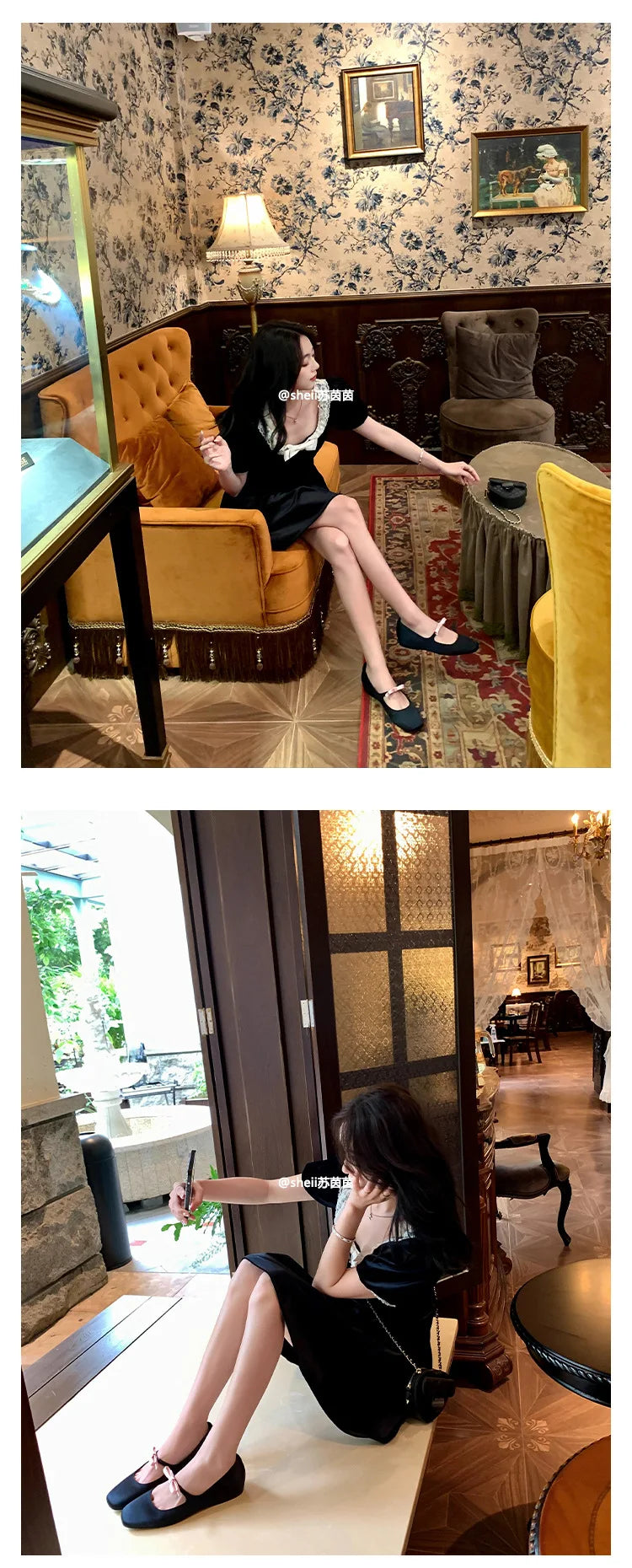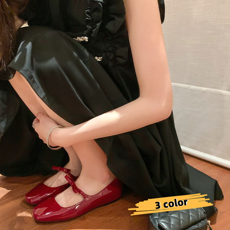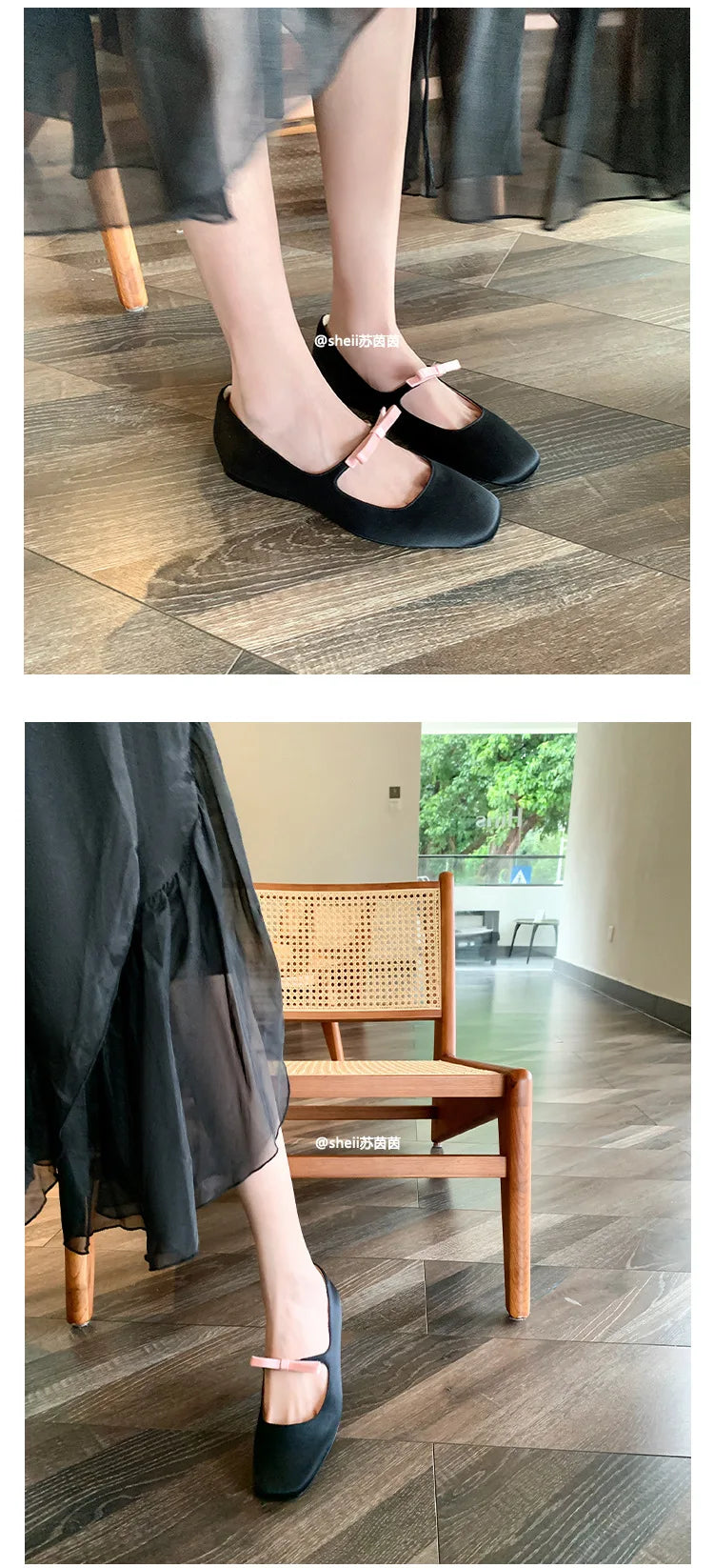 Ballet Falts Shoes for Women Bow Tie Elegant Women's Loafers Shoes with Low Heels Black Leather Mary Janes Desinger Shoes Ladies