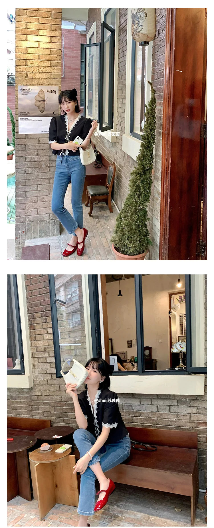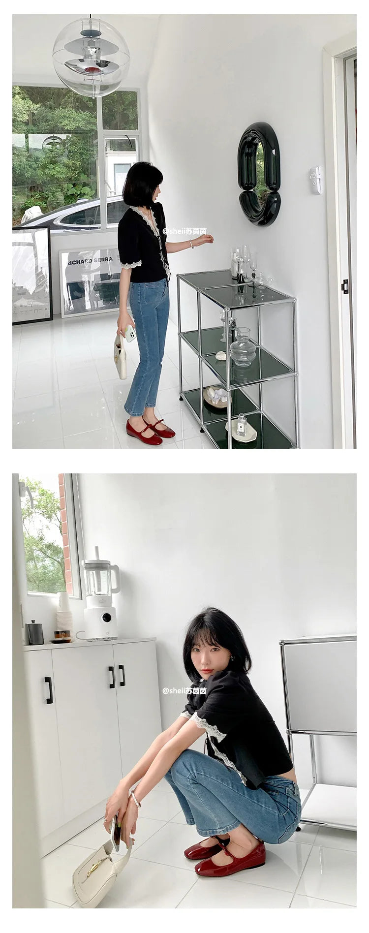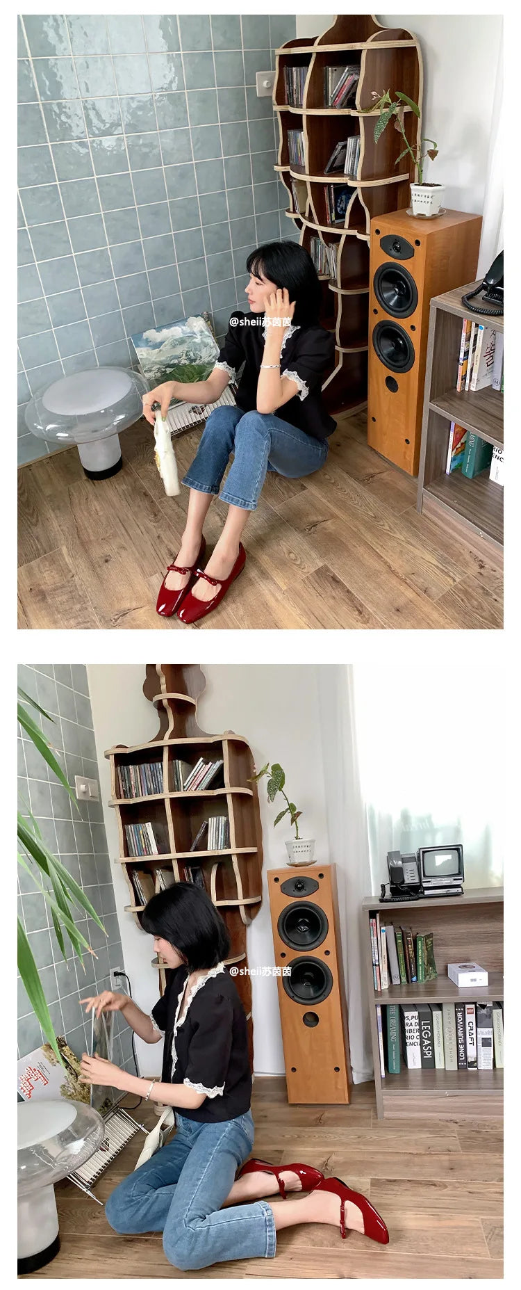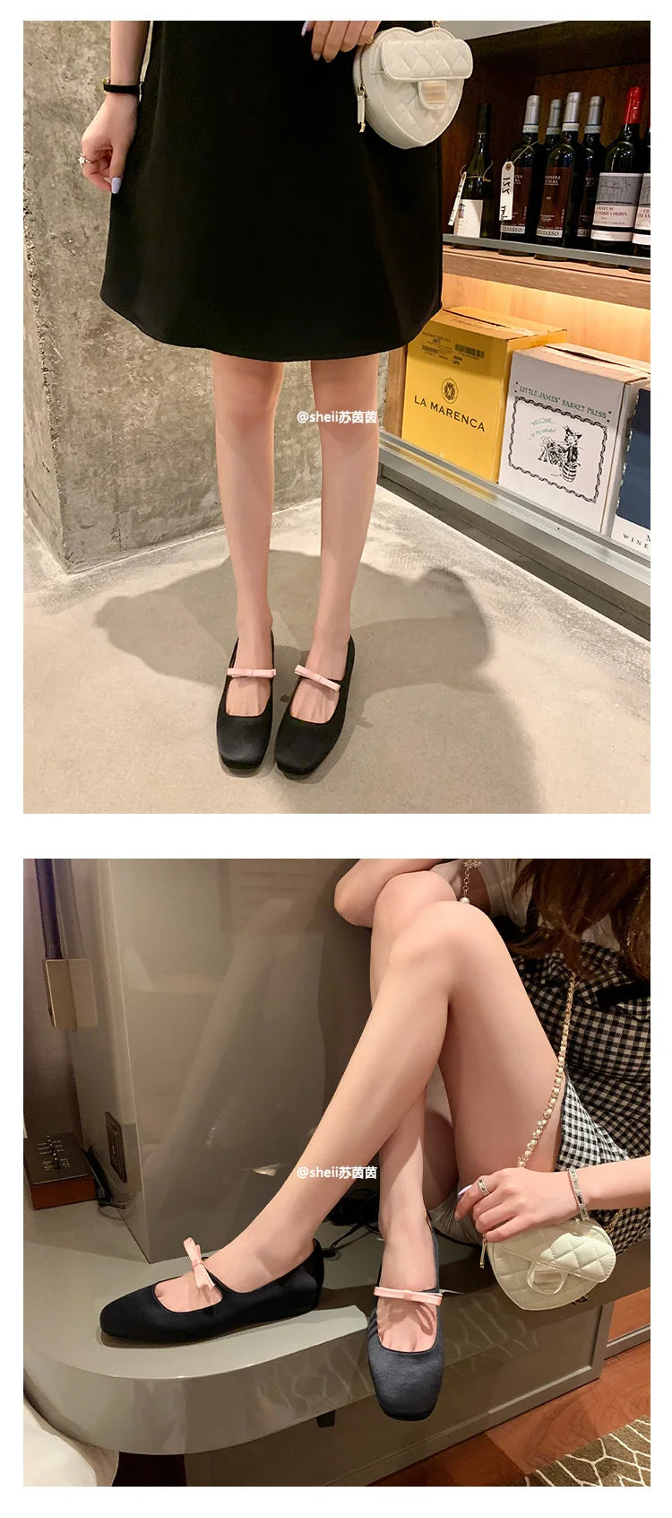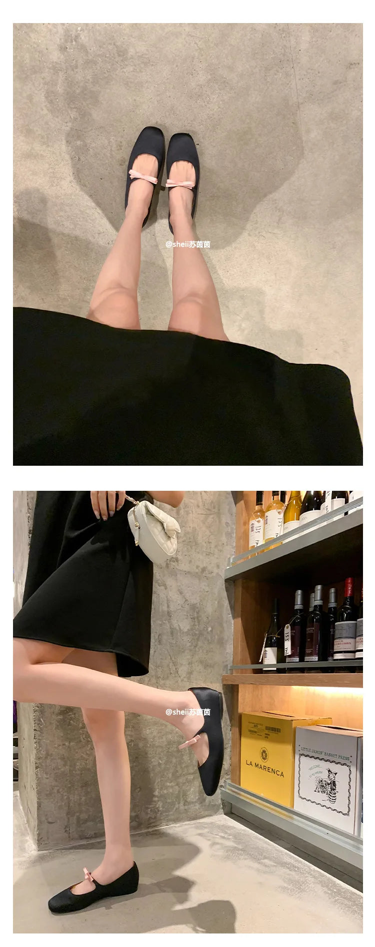 Ballet Falts Shoes for Women Bow Tie Elegant Women's Loafers Shoes with Low Heels Black Leather Mary Janes Desinger Shoes Ladies – Eleganter Komfort für den Alltag