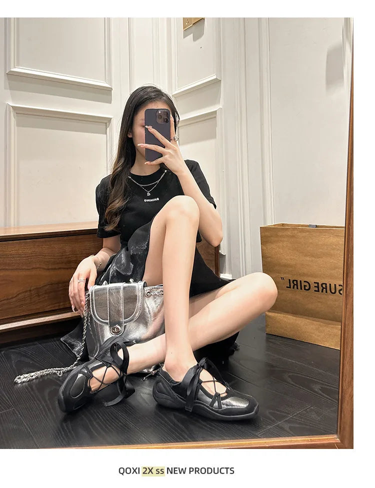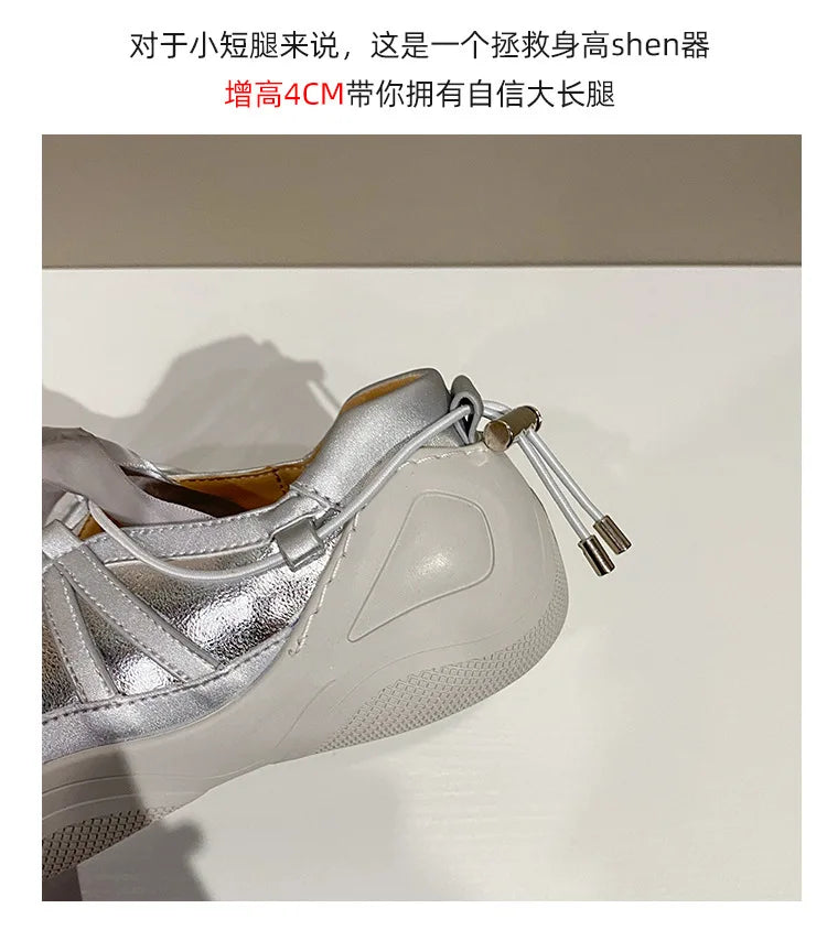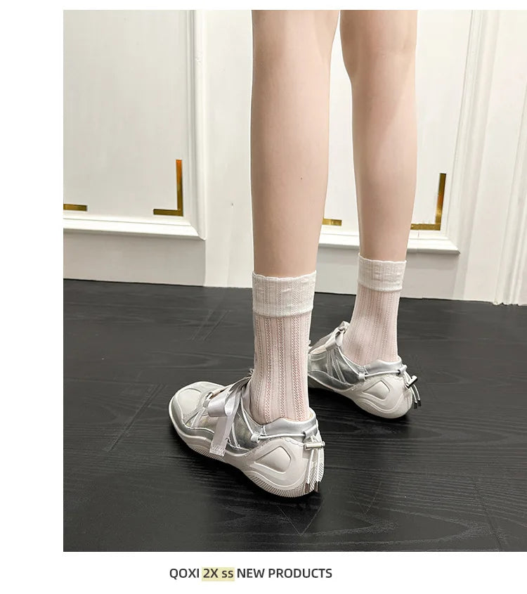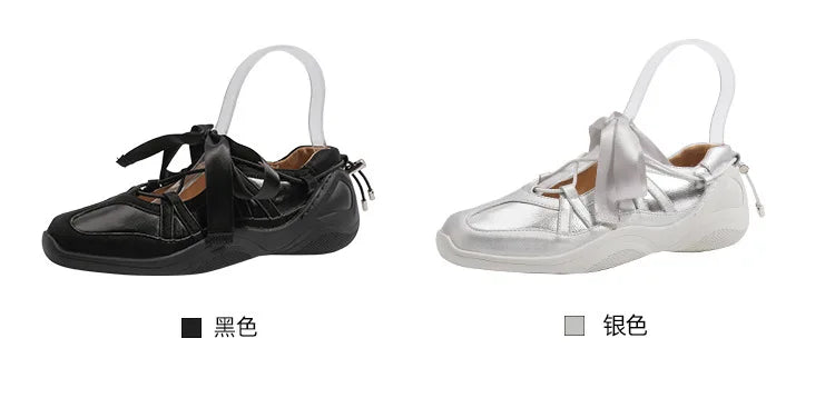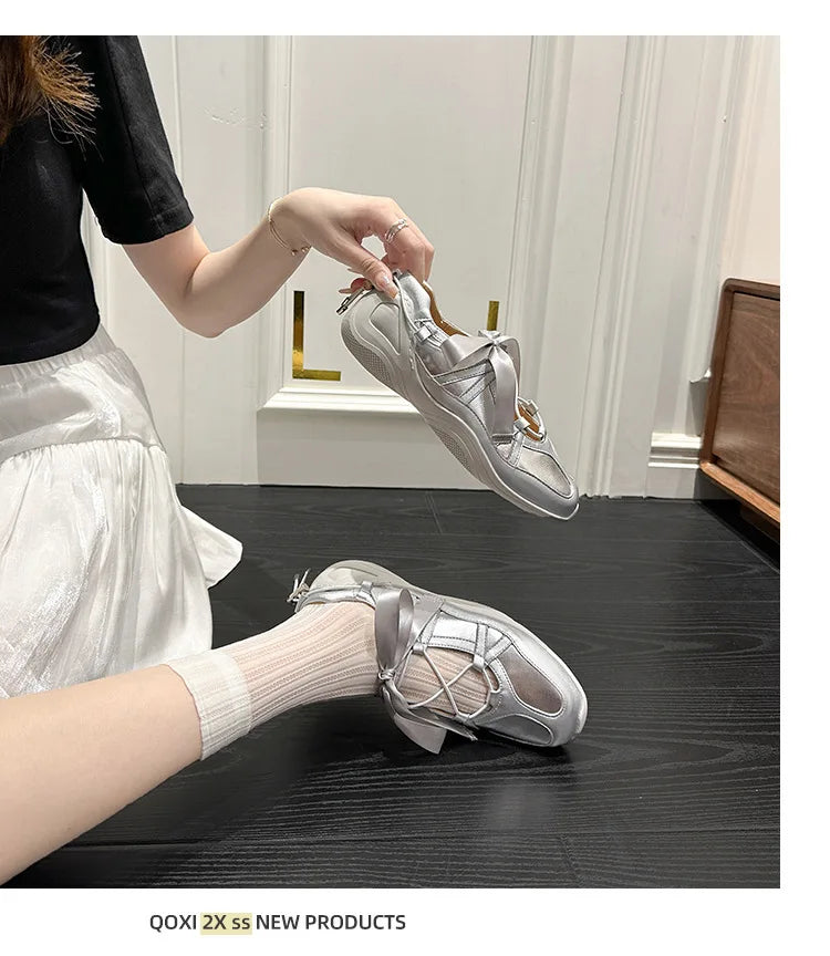 Ballet Flat Sneakers Women's Thick Bottom Bowknot Hollow Out Shoes – Komfortable Eleganz für den Alltag