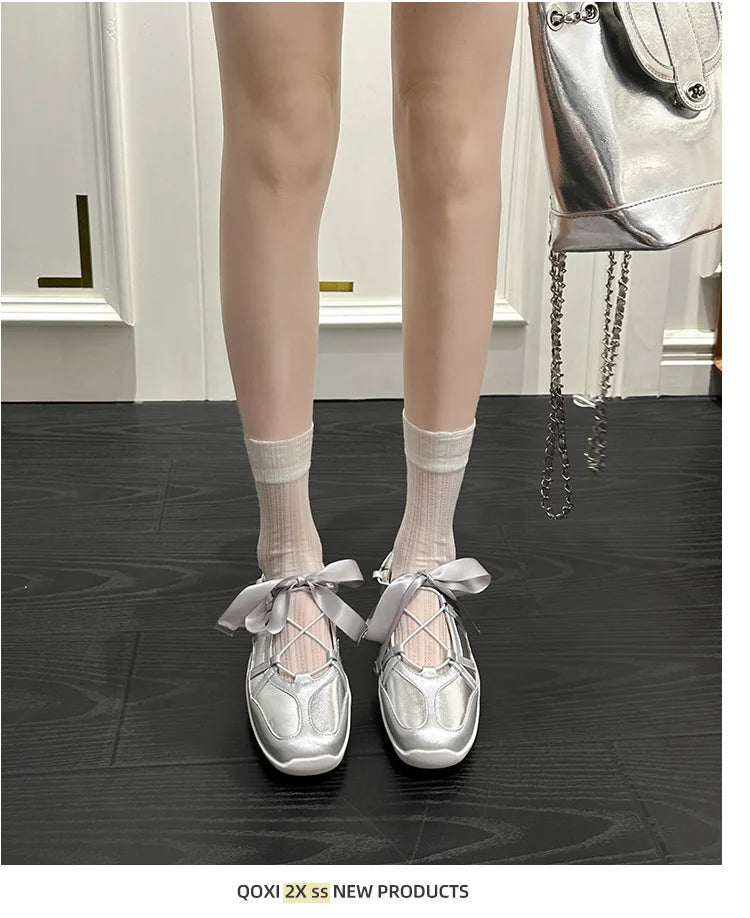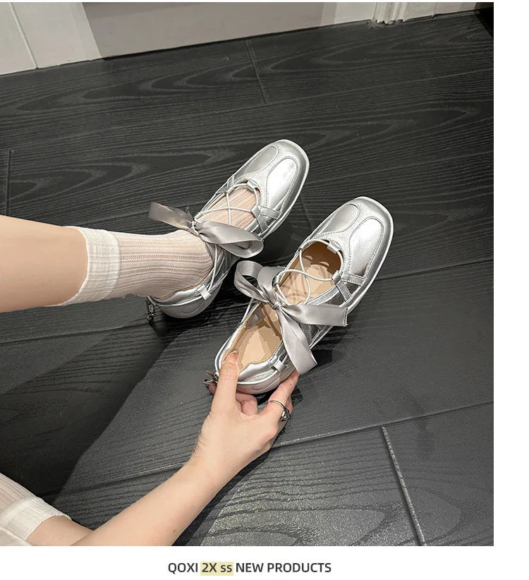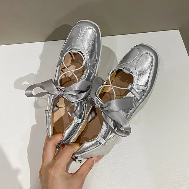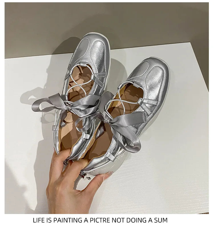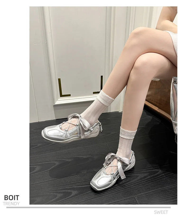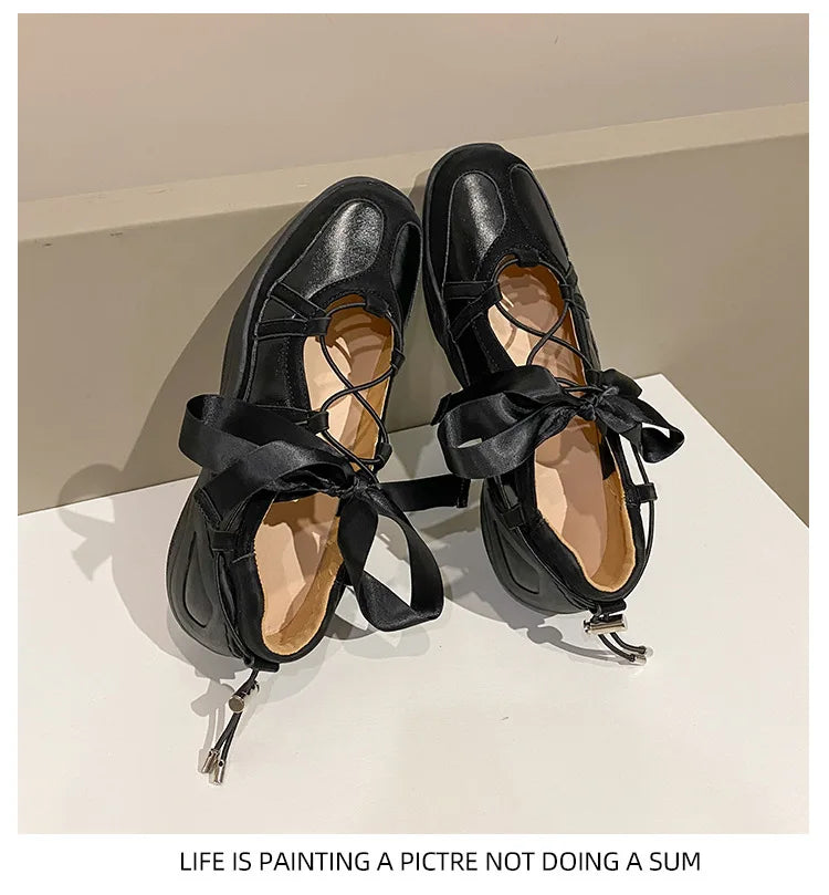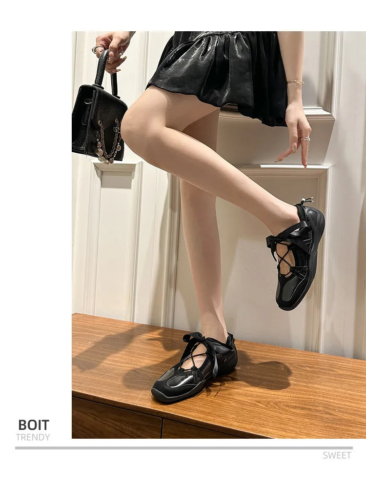 Ballet Flat Sneakers Women's Thick Bottom Bowknot Hollow Out Shoes Fashion Designer Mary Jane Ballet Comfort Shoes Female