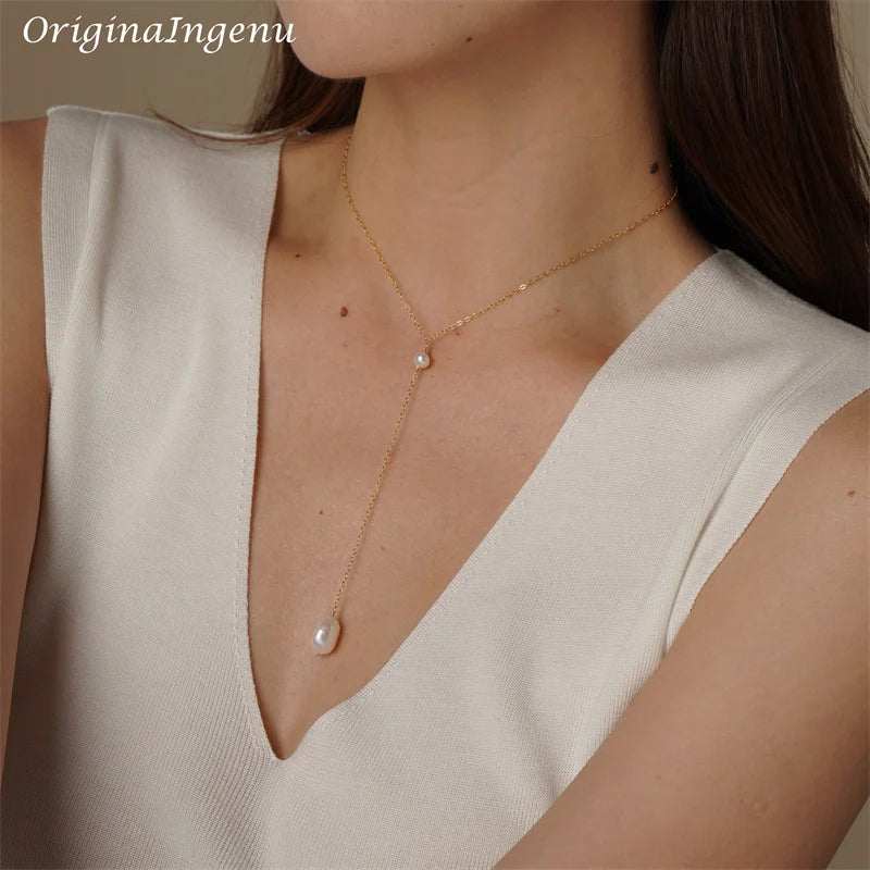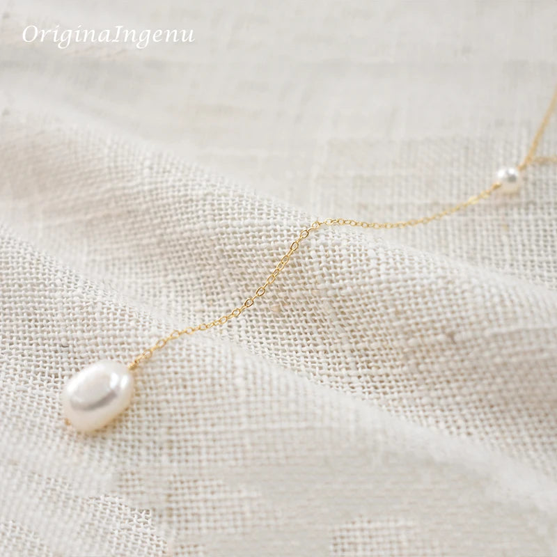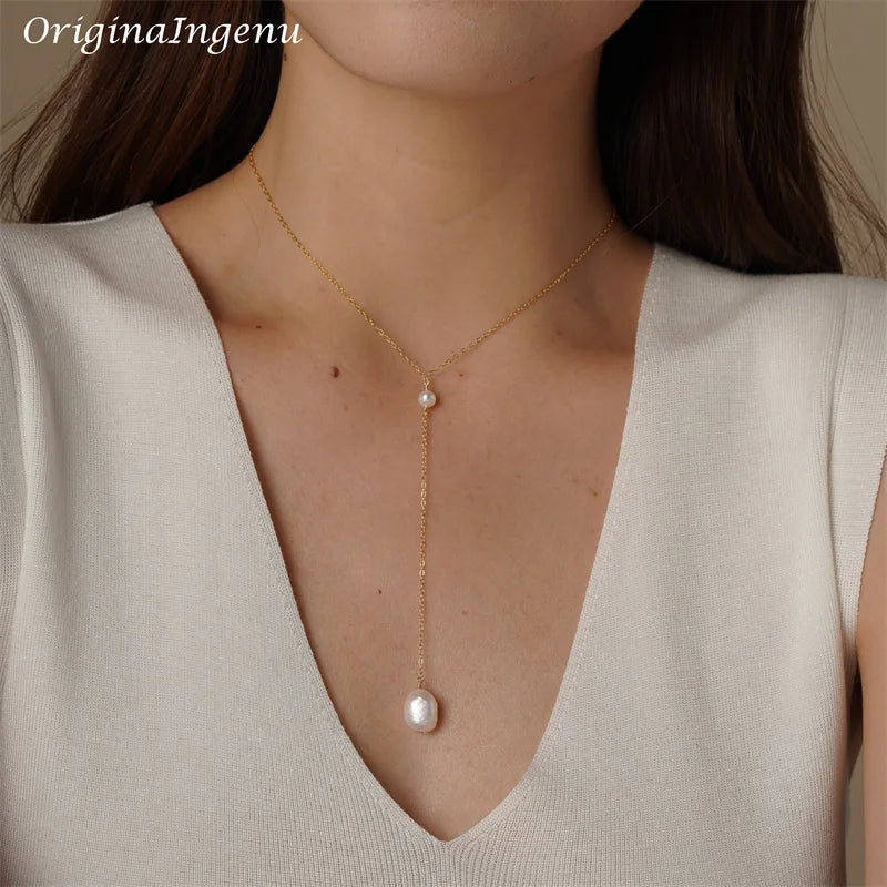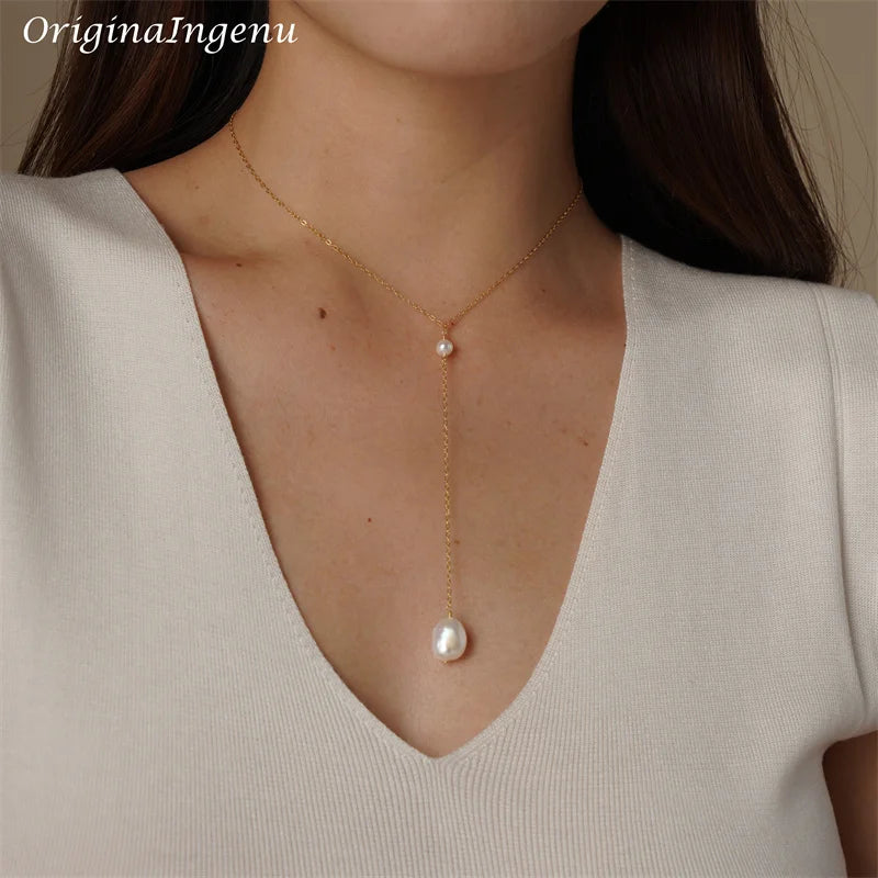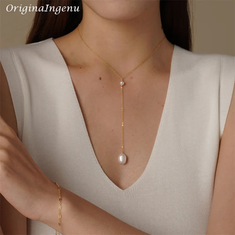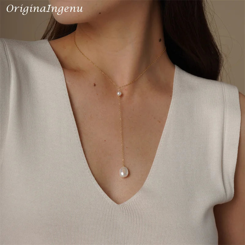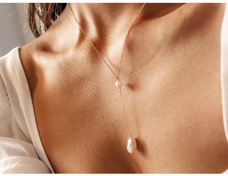 Baroque Pearl Pendant Silver Y Necklace Handmade 14K Gold Filled Choker Boho Collier Femme Kolye Collares Women Jewelry Necklace