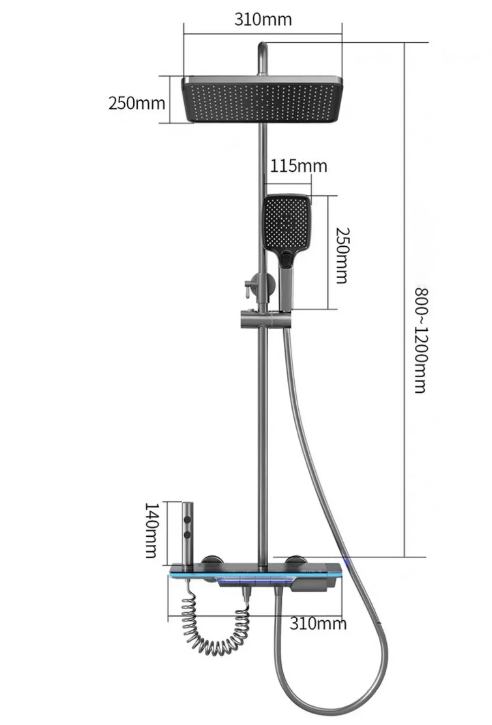 Dieses Duschsystem kombiniert technische Präzision mit einem durchdachten Designkonzept, das sowohl ästhetische als auch funktionale Ansprüche erfüllt. Die Kombination aus digitaler Temperaturanzeige, langlebigen Messingkomponenten und polierter Oberfläche bietet Ihnen eine zuverlässige, komfortable und pflegeleichte Lösung für Ihr Badezimmer. Die integrierte Beleuchtung sorgt zusätzlich für Atmosphäre, während die modulare Konstruktion eine einfache Wartung ermöglicht. Investieren Sie in ein Produkt, das robust gebaut ist, einfach installiert wird und den Alltag angenehmer macht.