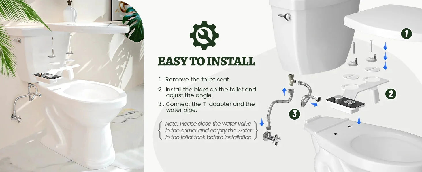 - Problem: Höhere Kosten durch Elektrik bei anderen Bidets. Lösung: Kein Stromanschluss nötig – Betrieb völlig kostenneutral und sicher.