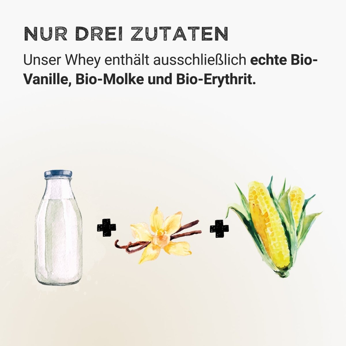 Erlebe die harmonische Verbindung von hochwertigem Bio-Whey-Protein, Bio-Gummi-Arabikum und echtem Bio-Vanillepulver. Diese einzigartige Komposition versorgt dich optimal mit Nährstoffen und kombiniert sanften Vanille-Geschmack mit funktioneller Wirksamkeit.