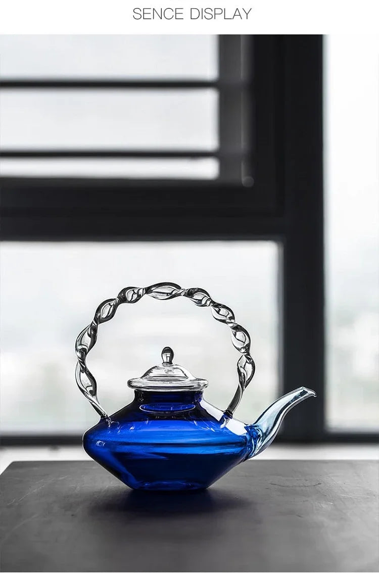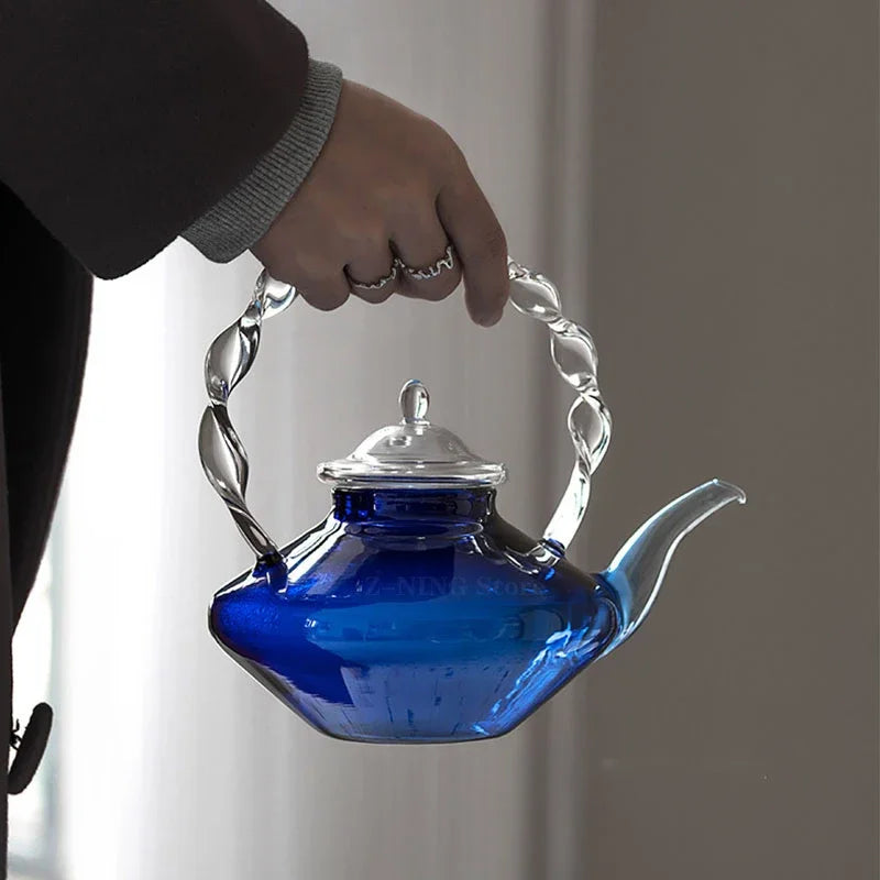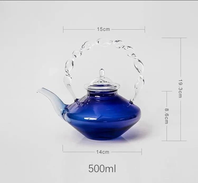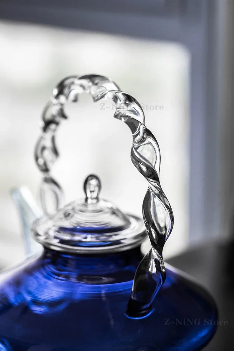 Blue Glass Teapot Teacup Tea Filter Mesh Glass Coffee Pot Heat-resistant Glass Pot Household Kitchen Kettle Exquisite Gift 2022