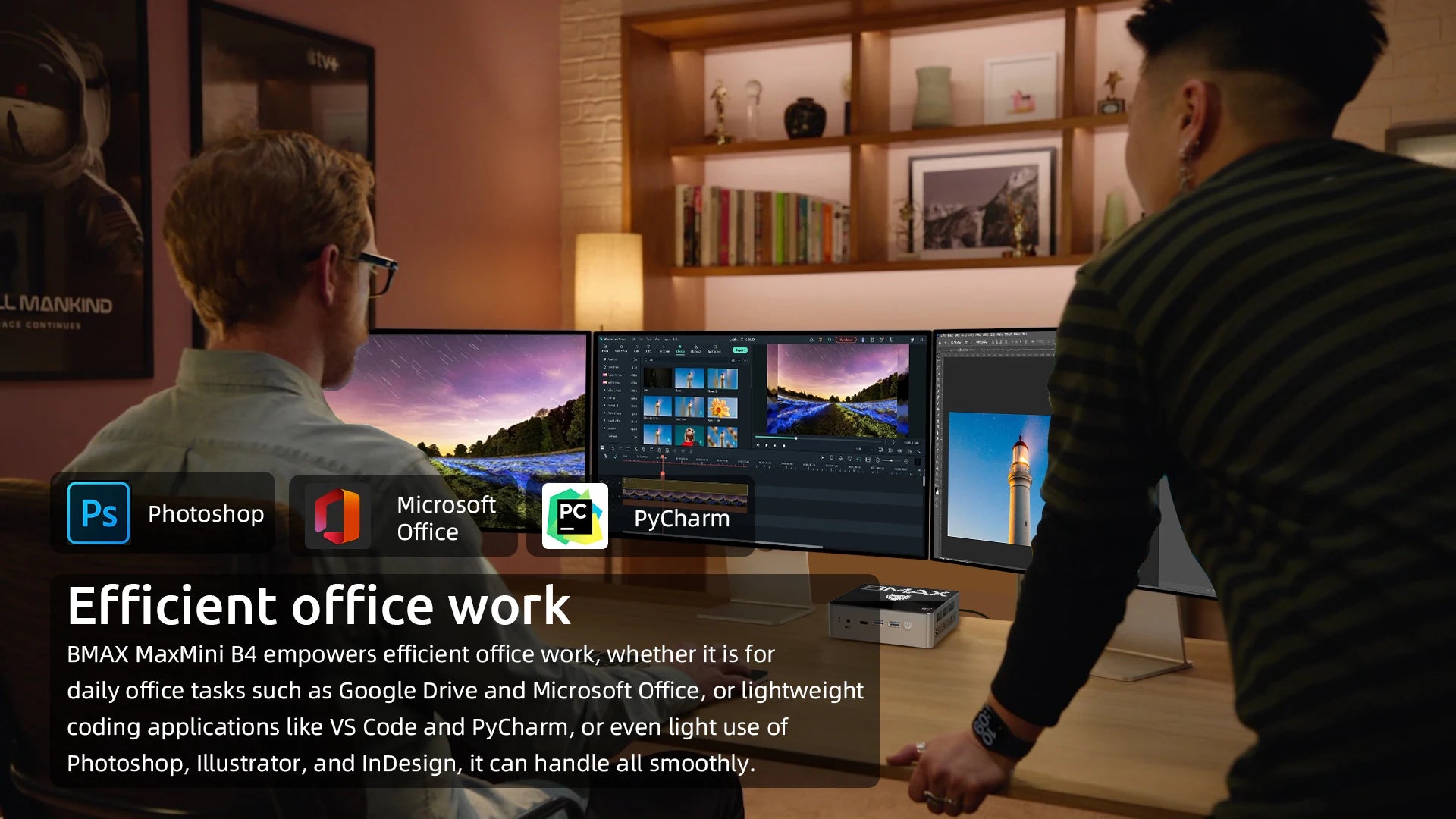 Der BMAX B4 Plus ist konzipiert, um anspruchsvolle Alltagsszenarien effizient zu bedienen und dabei minimalen Platzbedarf mit hoher Benutzerfreundlichkeit zu verbinden. Dank der Kombination aus Intel N100 Prozessor, großzügigem Arbeitsspeicher und schnellem SSD-Speicher profitieren Nutzer von kurzen Ladezeiten, stabiler Systemperformance und vielseitigen Anwendungsoptionen. Ob als primärer Arbeitsrechner im Home-Office, als schlanke Multimedia-Einheit im Wohnzimmer oder als zuverlässige Ergänzung in Büro- und Schulungsumgebungen — dieser Mini-PC bietet eine ausgereifte Balance aus Leistung, Flexibilität und Energieeffizienz.