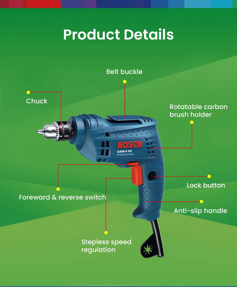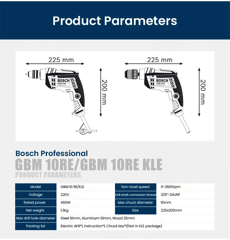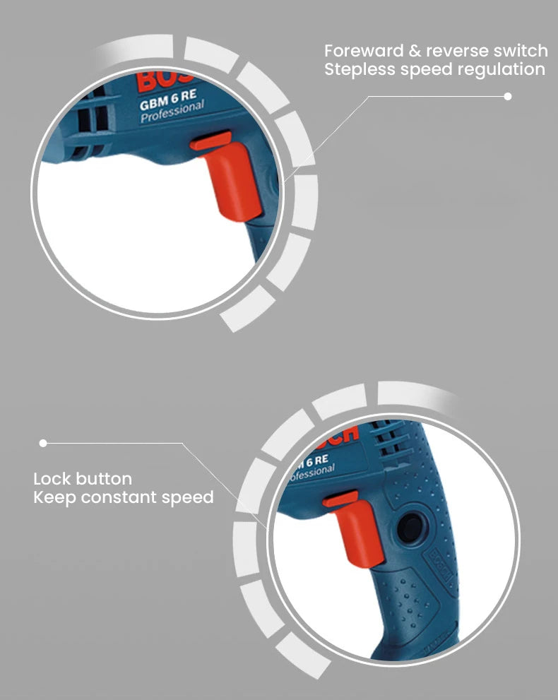 Bosch Electric Drill Screwdriver Gbm 400/6RE/10RE Rotary Drill 220V Adjustable Speed Strong Driller Power Tool for Wood Metal