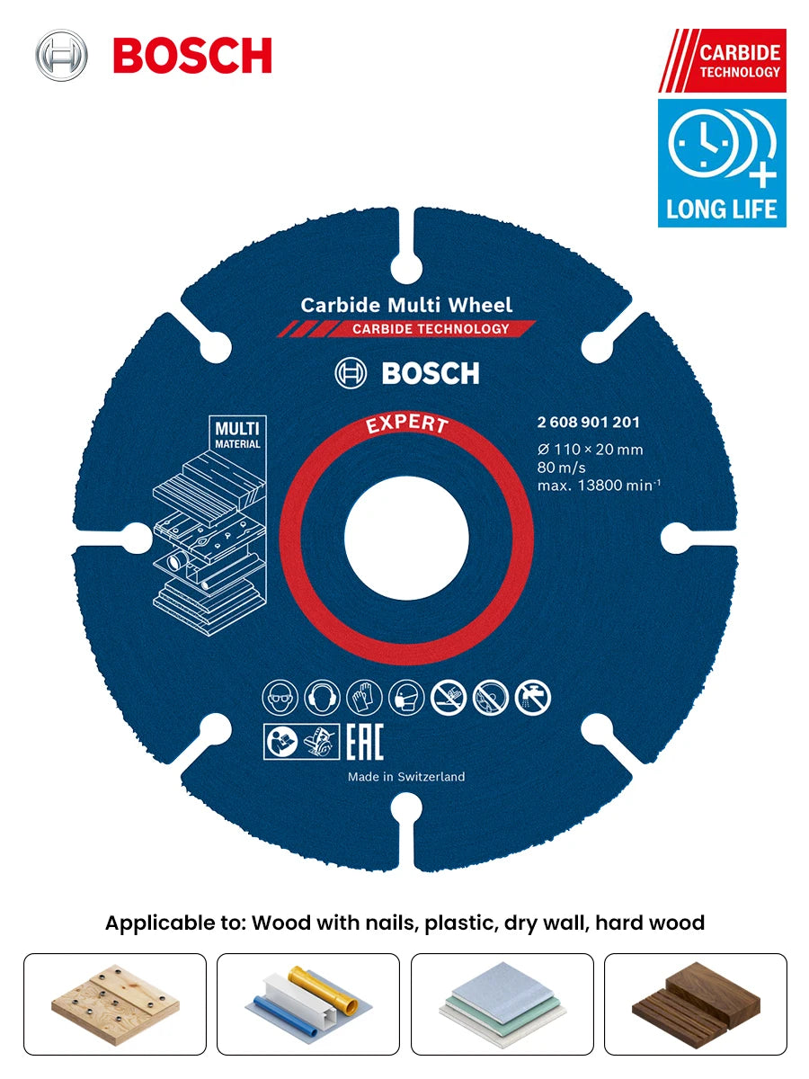 Bosch Expert Cutting Wheel 110Mm Carbide Muti-Material Cutting Disc for Wood Plastic Drywall Hardwood Angle Grinder Accessories
