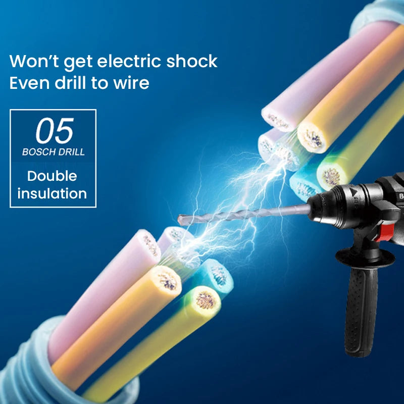 - Anwendungsbereiche: Bohren und Meißeln in Beton, Ziegel, Metall, Holz und Fliesen – ideal für Bau und Renovierung.